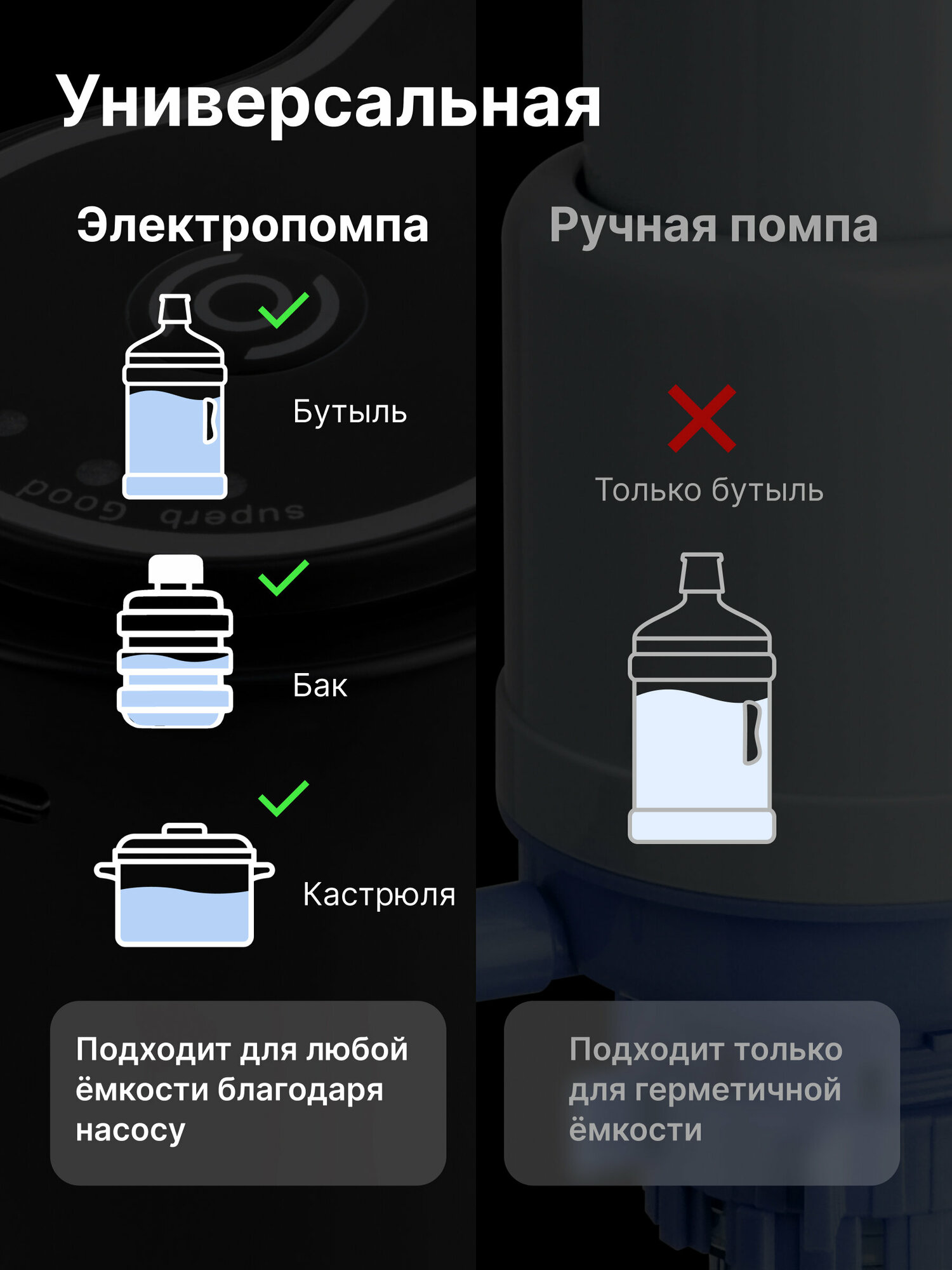 Помпа для воды LESOTO Black Электрическая аккумуляторная USB-помпа (насос) интересное: