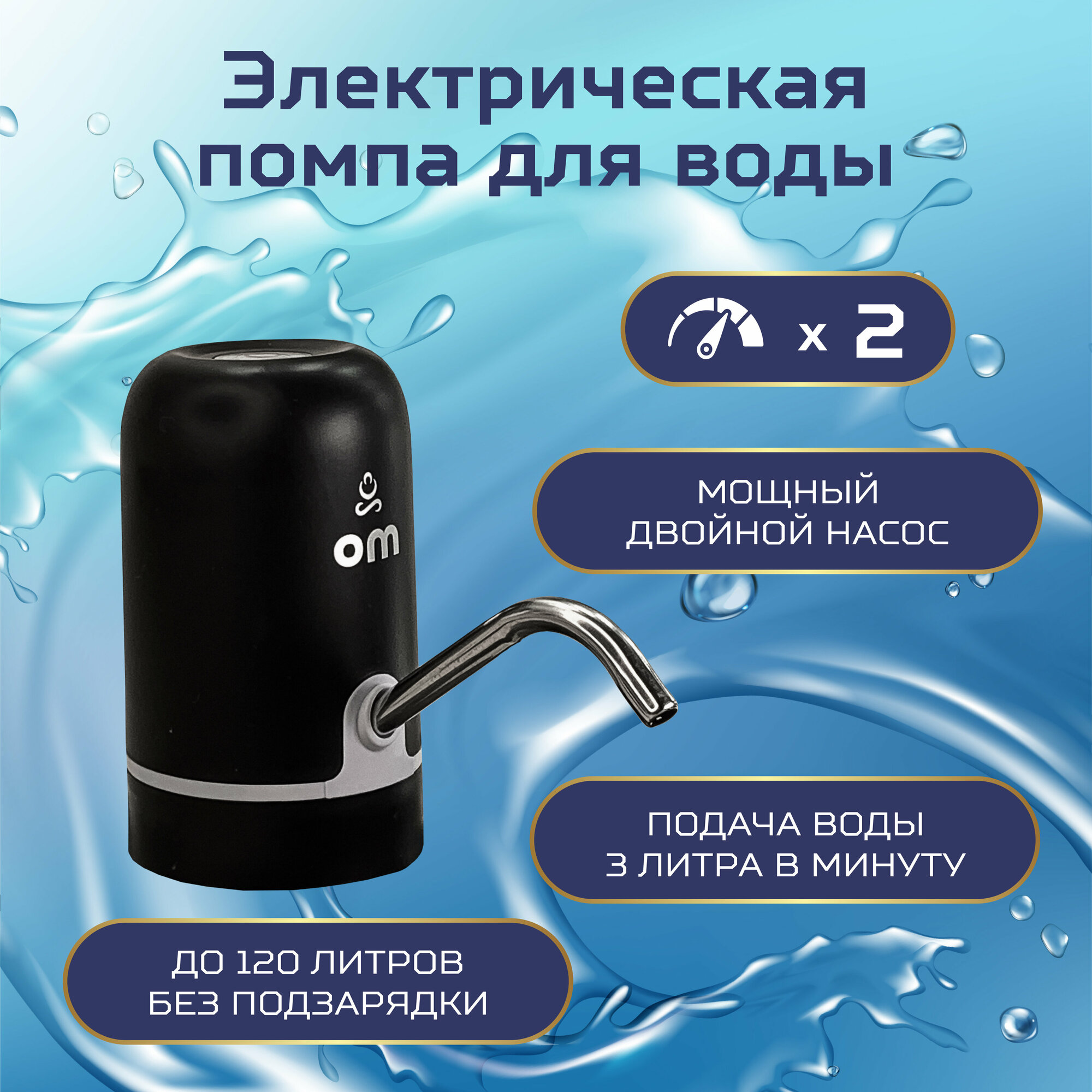Электрическая помпа для воды OM, белый цвет, без охлаждения, установка на бутылку W062S