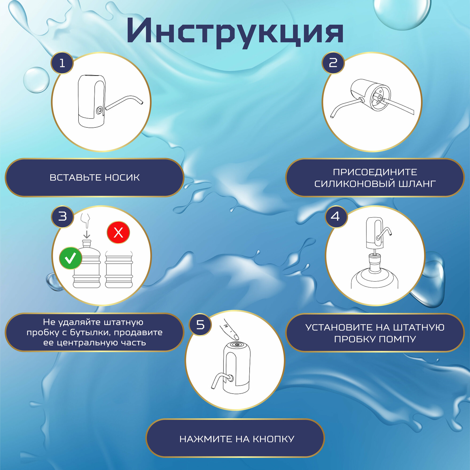 Электрическая помпа для воды , установка на бутылку, белая BM
