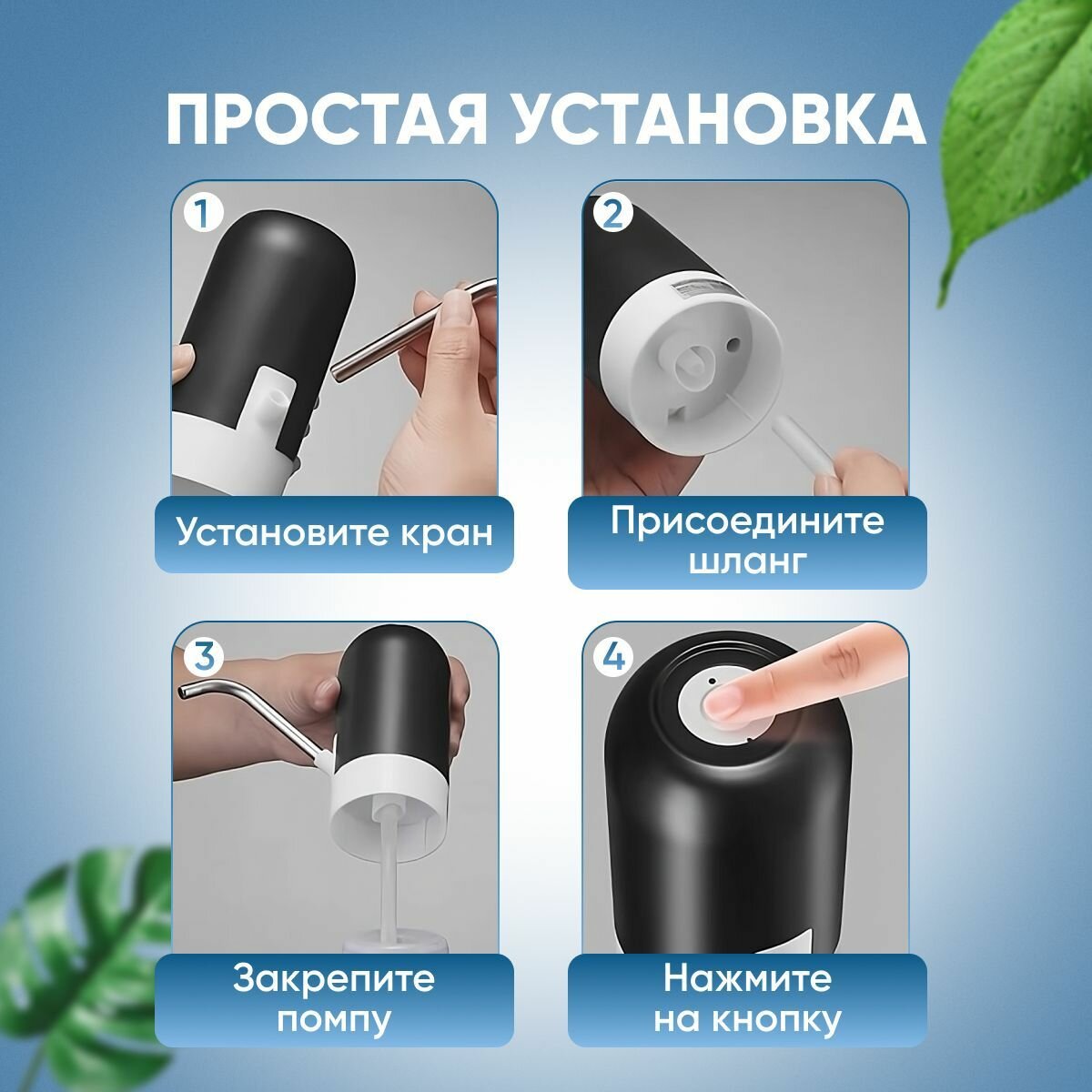 Электрическая помпа для воды , установка на бутылку, белая BM