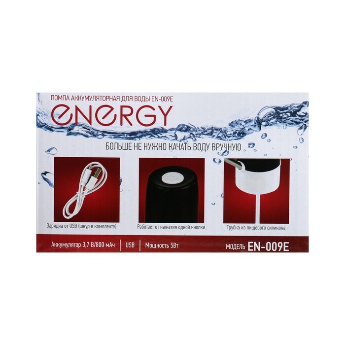Помпа для воды ENERGY EN-009E, электрическая, 5 Вт, 800 мАч, от USB, чёрная
