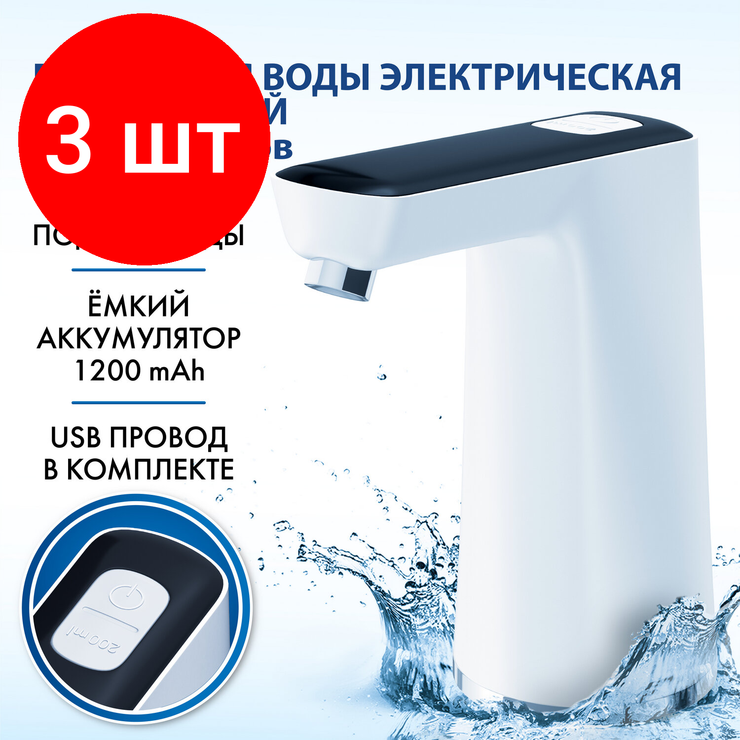 Электрическая помпа для воды , установка на бутылку, белая BM