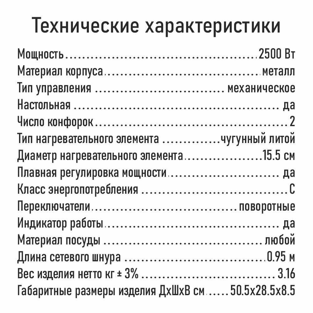 Электрическая настольная плитка чудесница ЭЛП-804, 1500 Вт, черный
