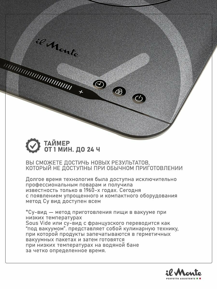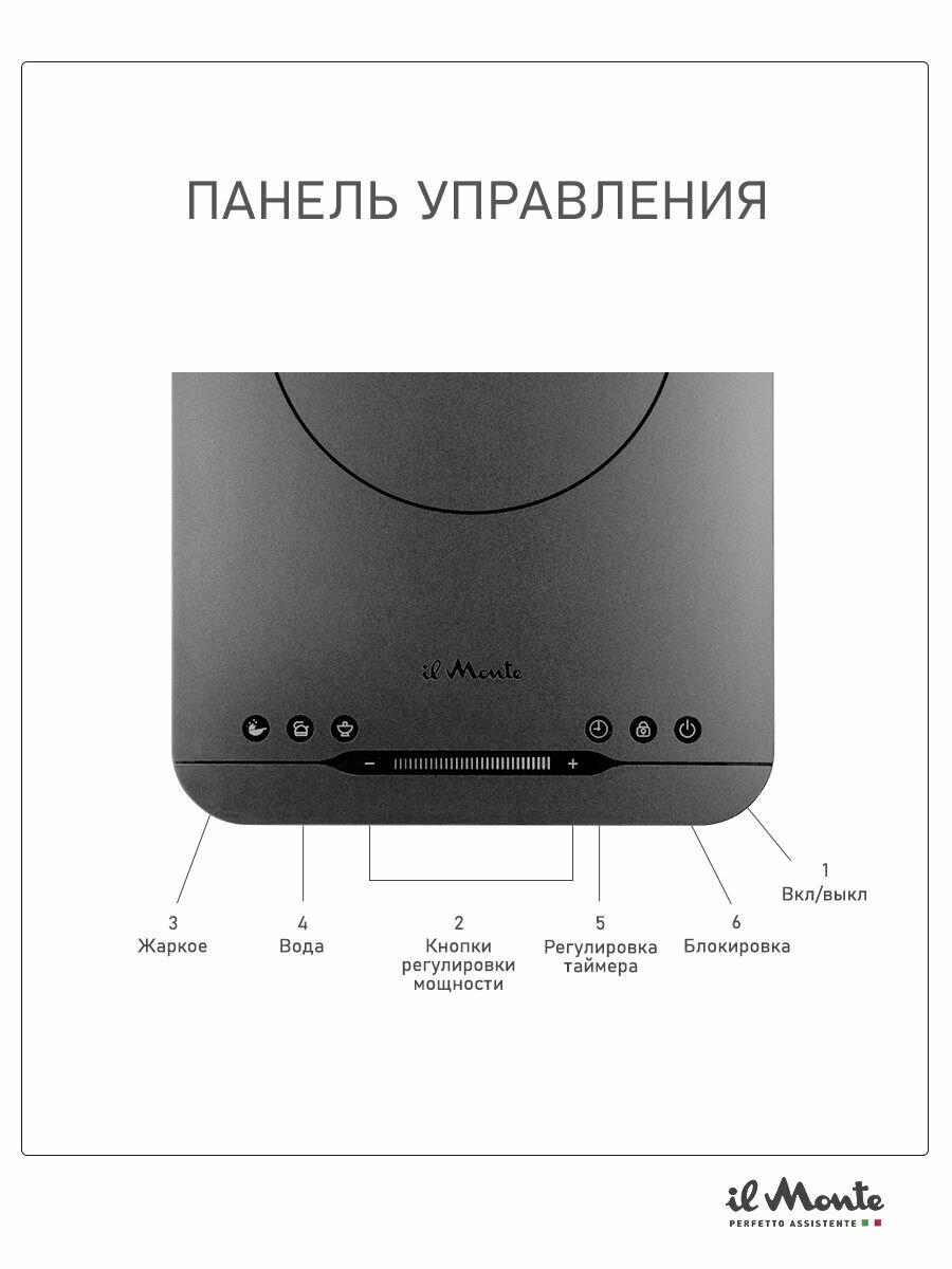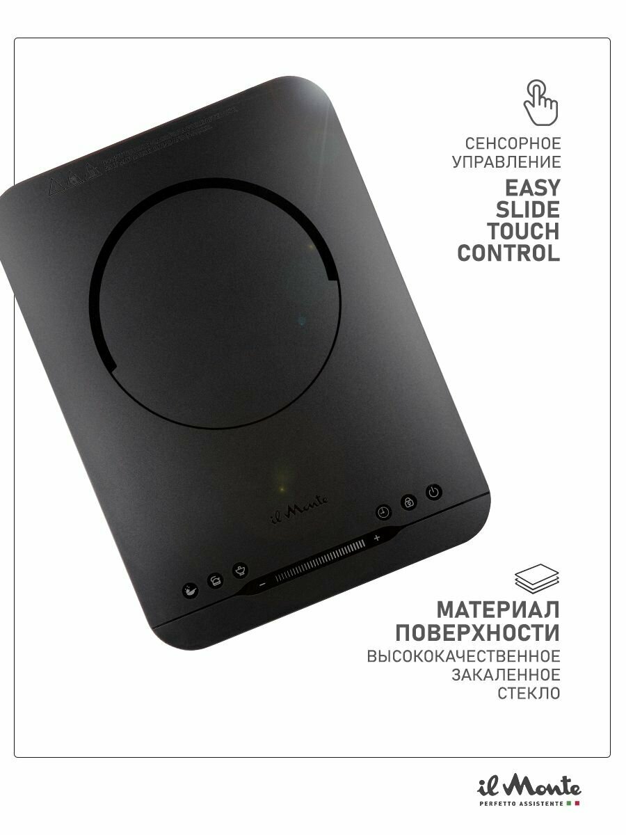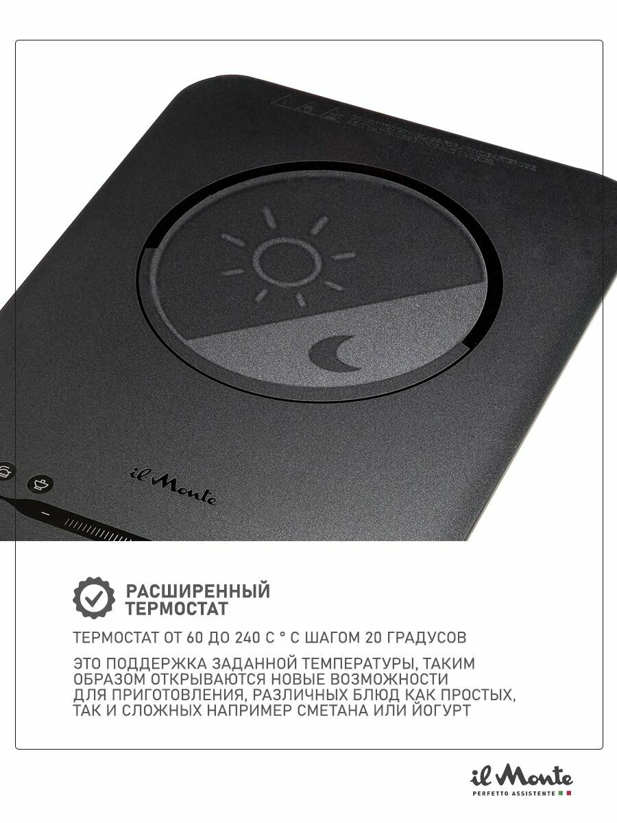 Индукционная плитка настольная, Сенсорное управление, 9 режимов, Термостат от 60 до 240 С, Таймер до 24 ч, Автоотключение, Защита от детей, il Monte TH-201-IH