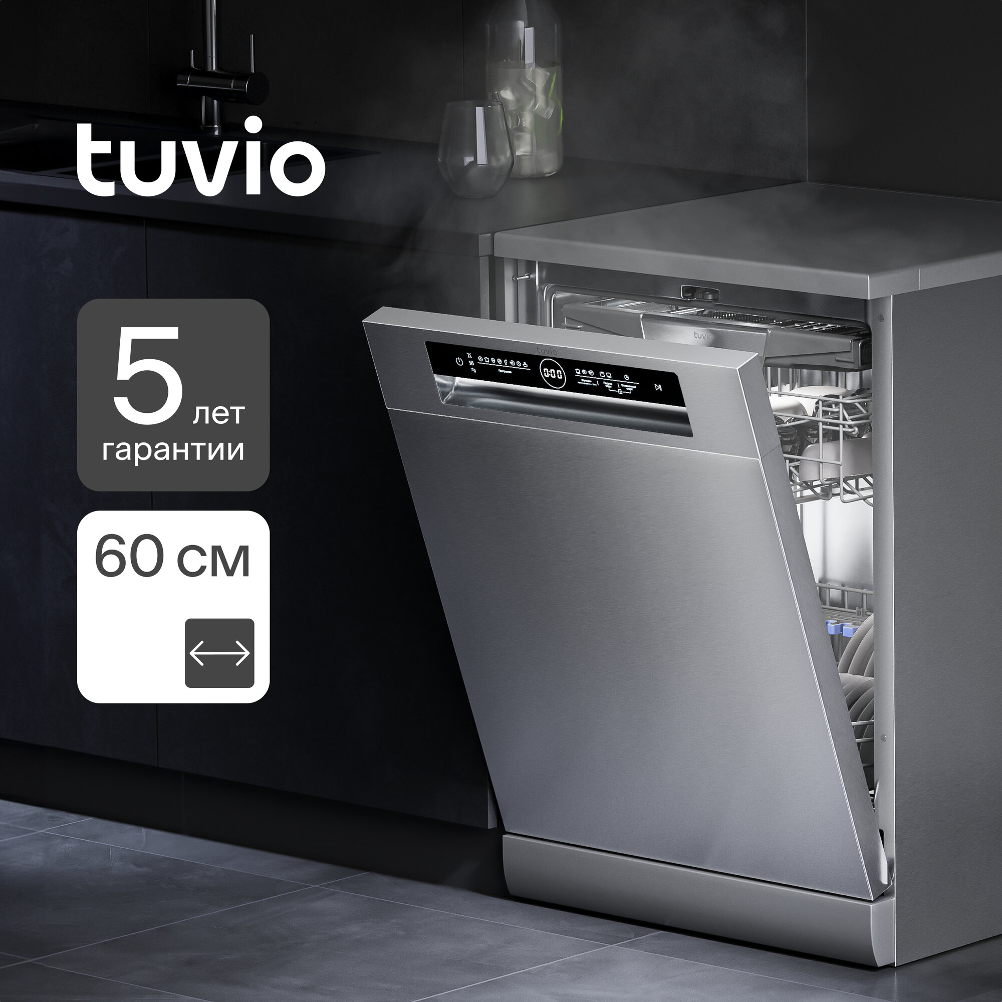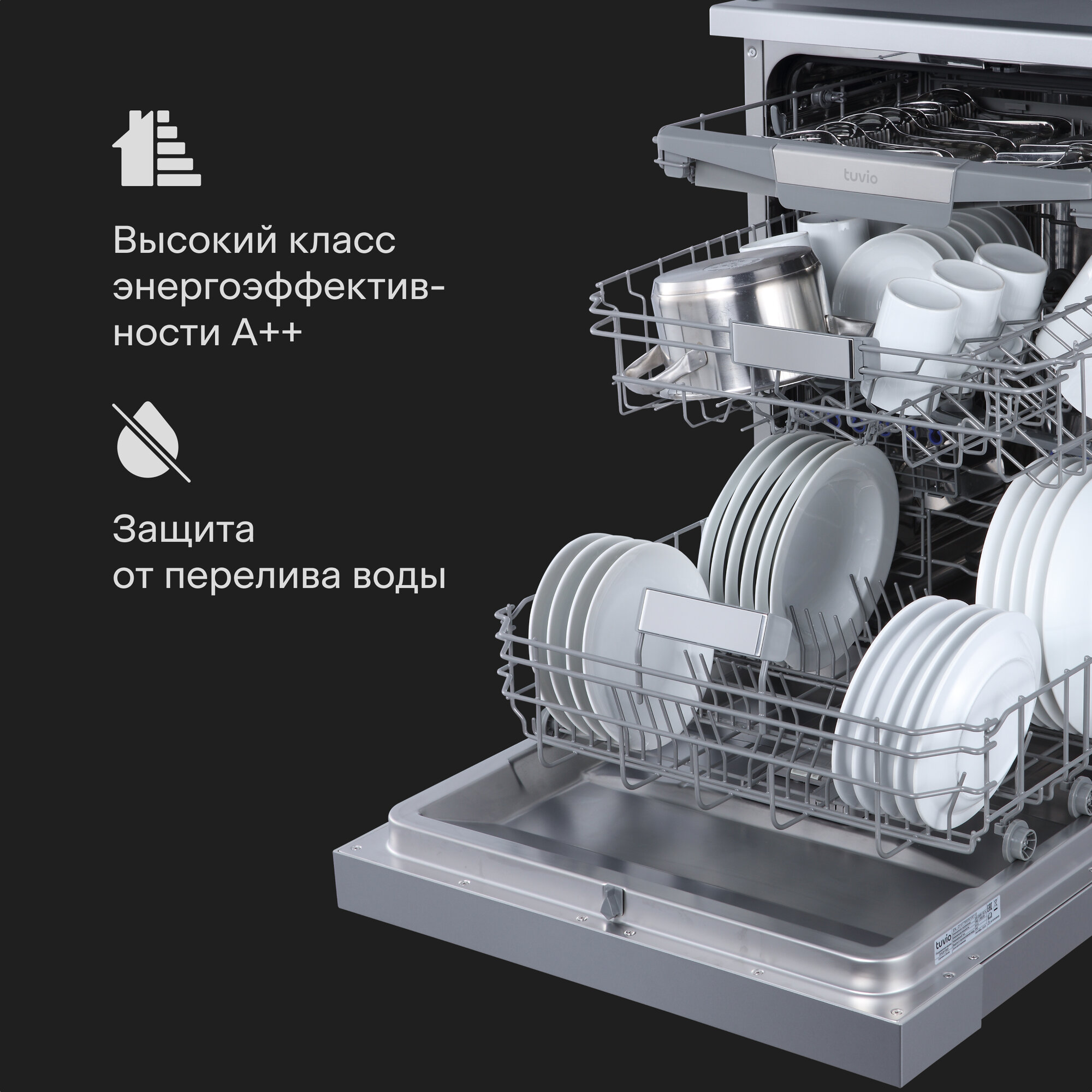 Посудомоечная машина с инвертором и автооткрыванием Tuvio DF63PT8XI1, нержавеющая сталь интересное: