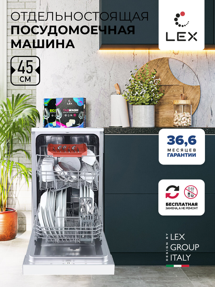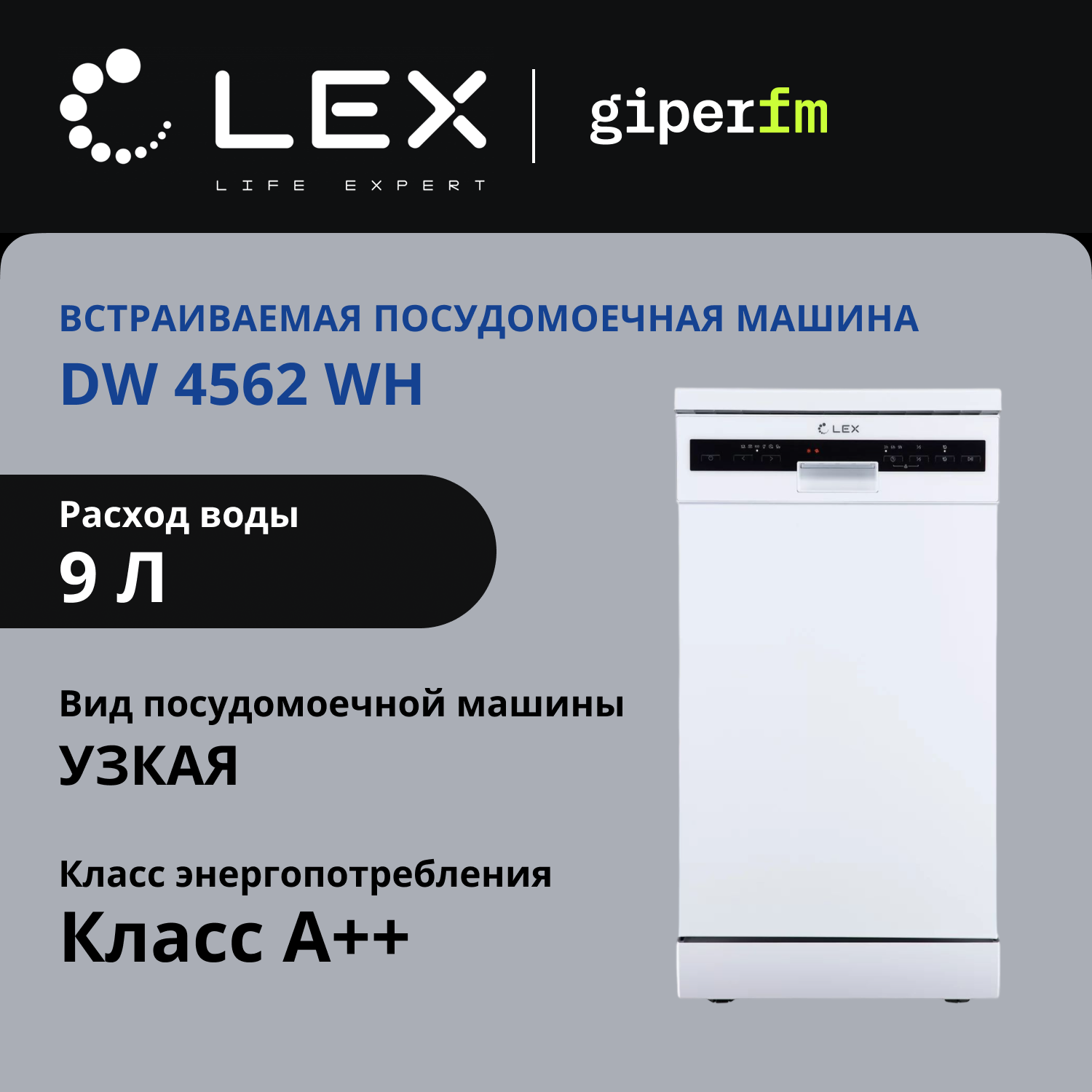 Посудомоечная машина LEX DW 4562 WH, узкая, напольная, 44.8см, загрузка 10 комплектов, белая [chmi000311]