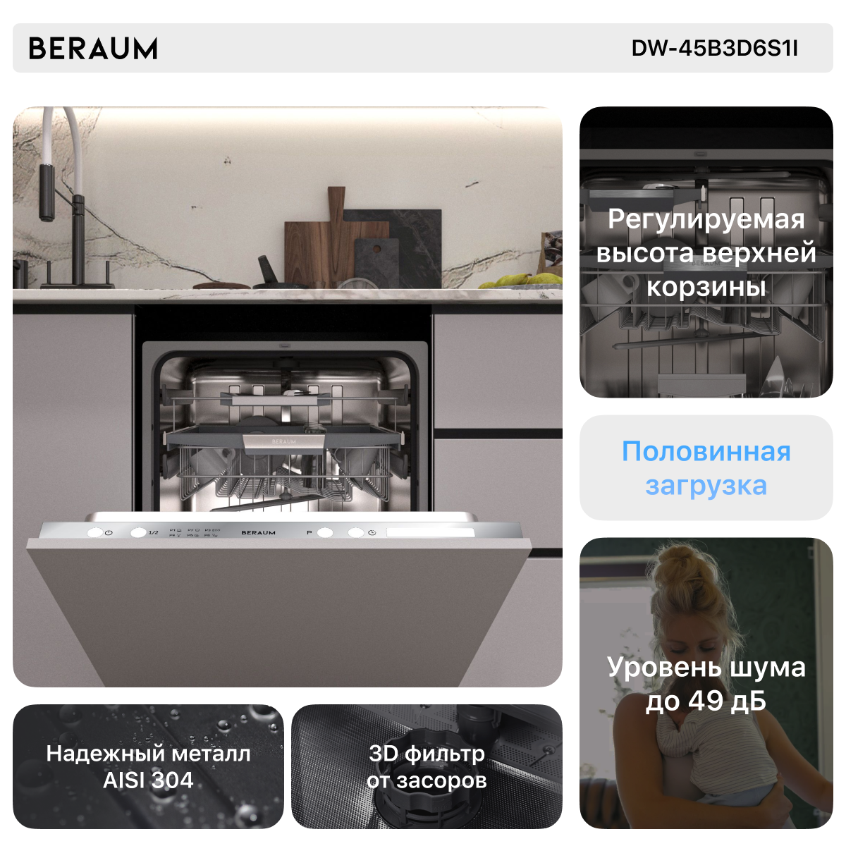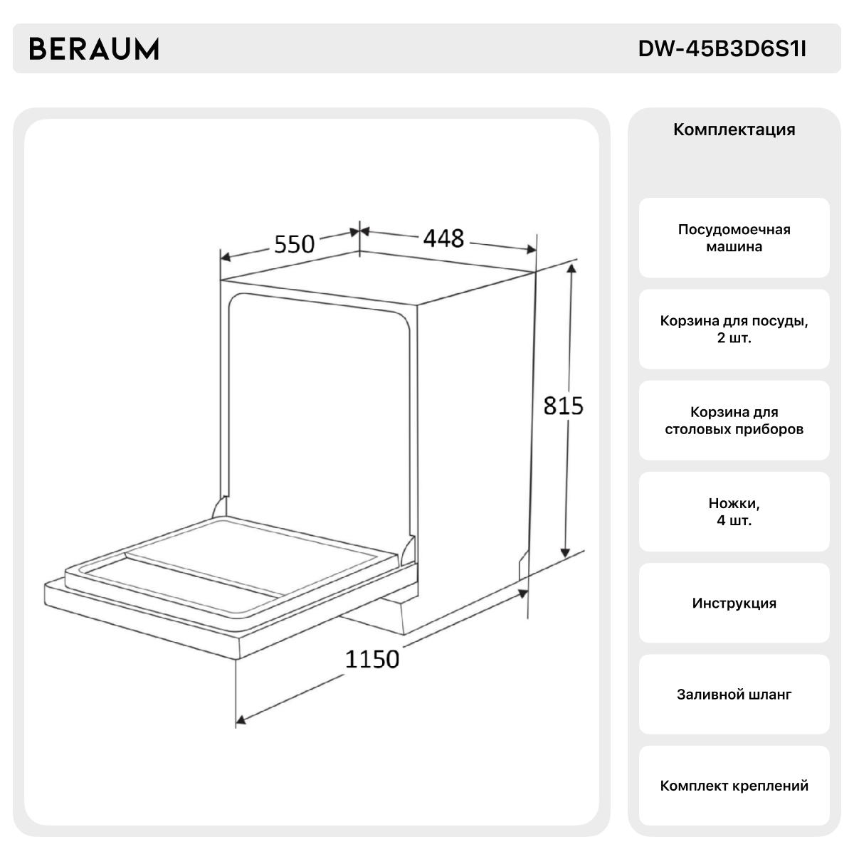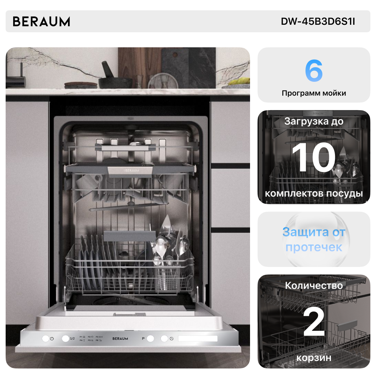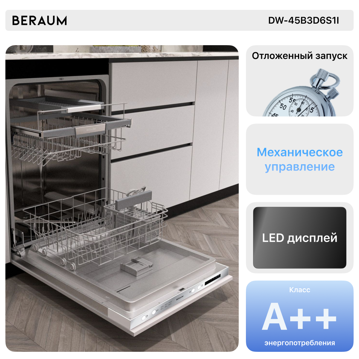 Встраиваемая посудомоечная машина Beraum DW-45B3D6S1I интересное: