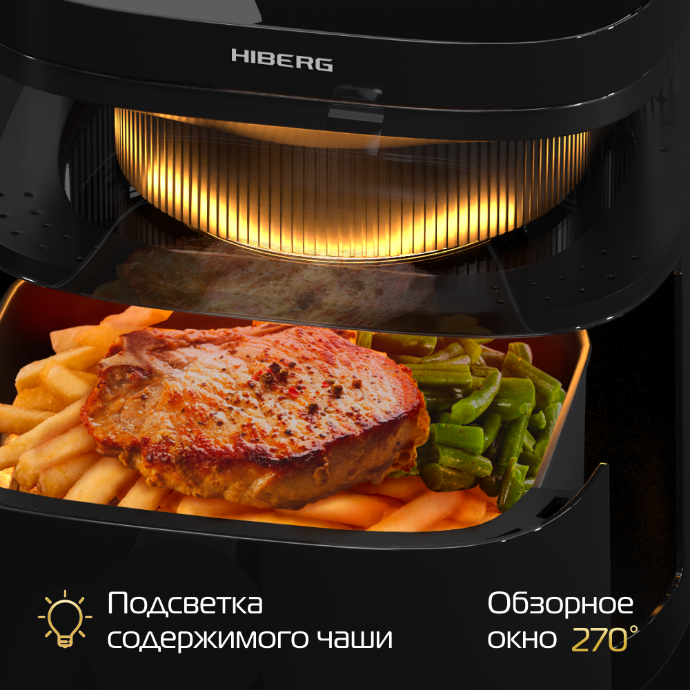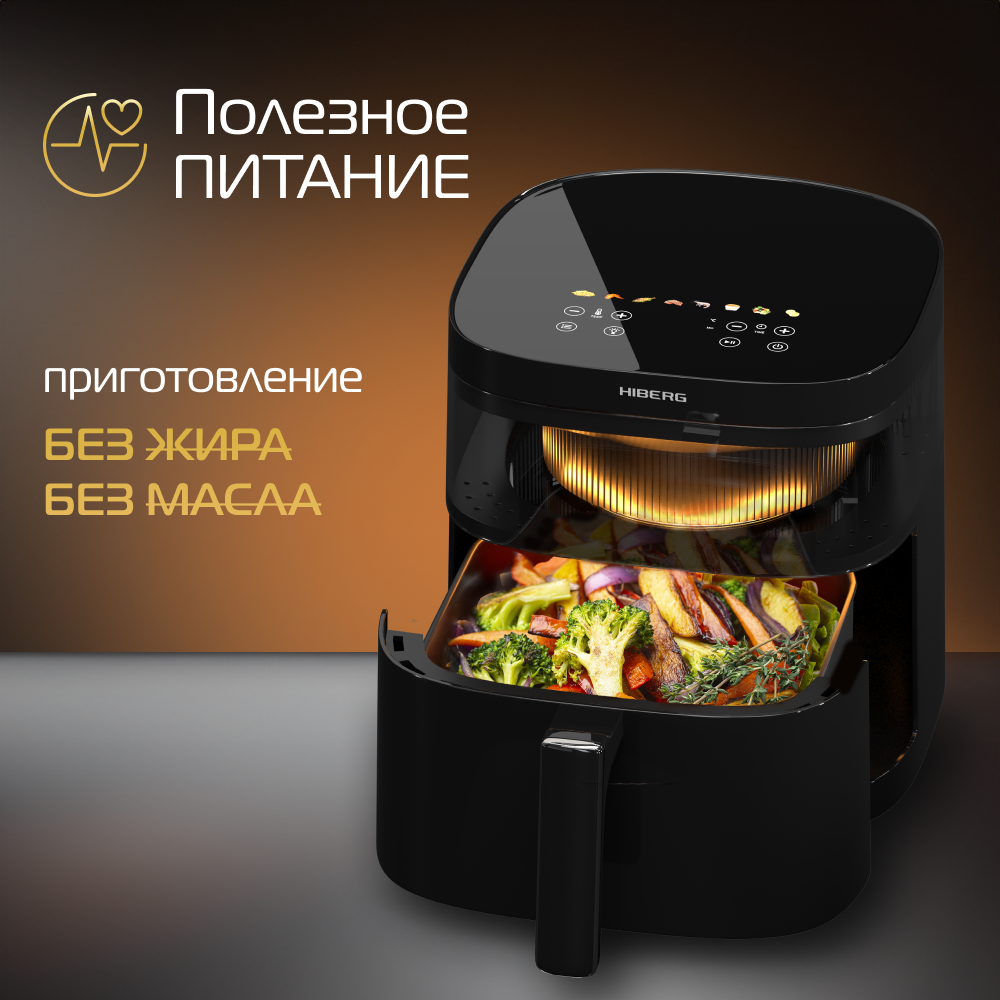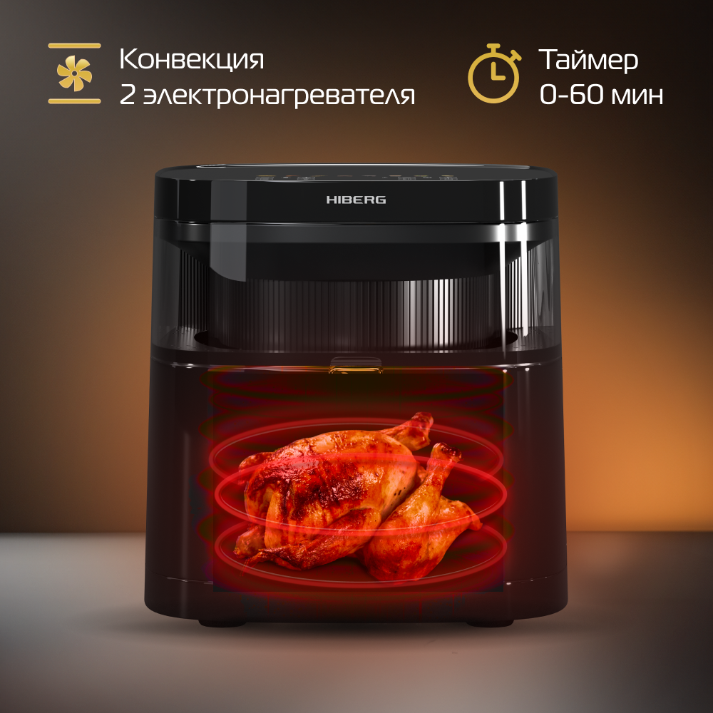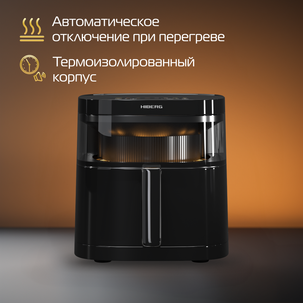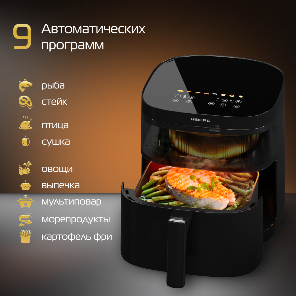 Аэрогриль HIBERG MGG 600 B, 5,8 л, 2 ТЭНа, черный интересное:
