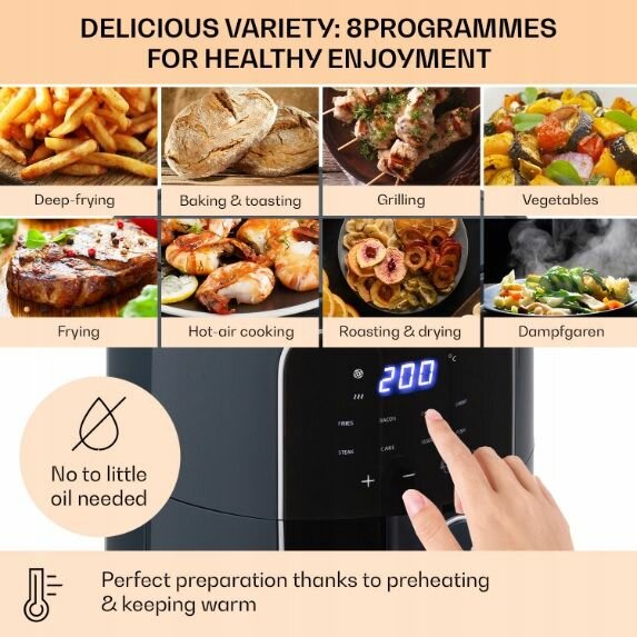 Аэрофритюрница Klarstein Crisp-Pro 1400 Вт 3,5л черная интересное: