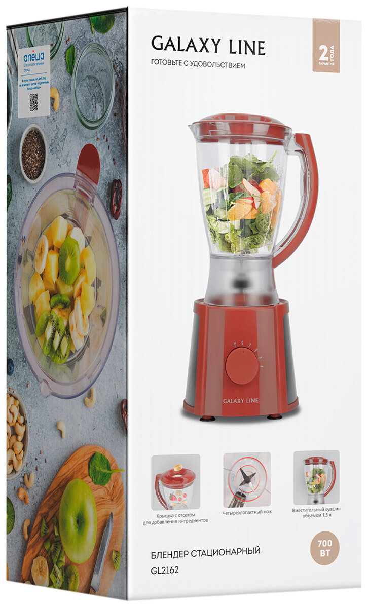 Блендер стационарный Galaxy LINE GL 2162, красный, максимальная мощность 700 Вт, пластиковая чаша