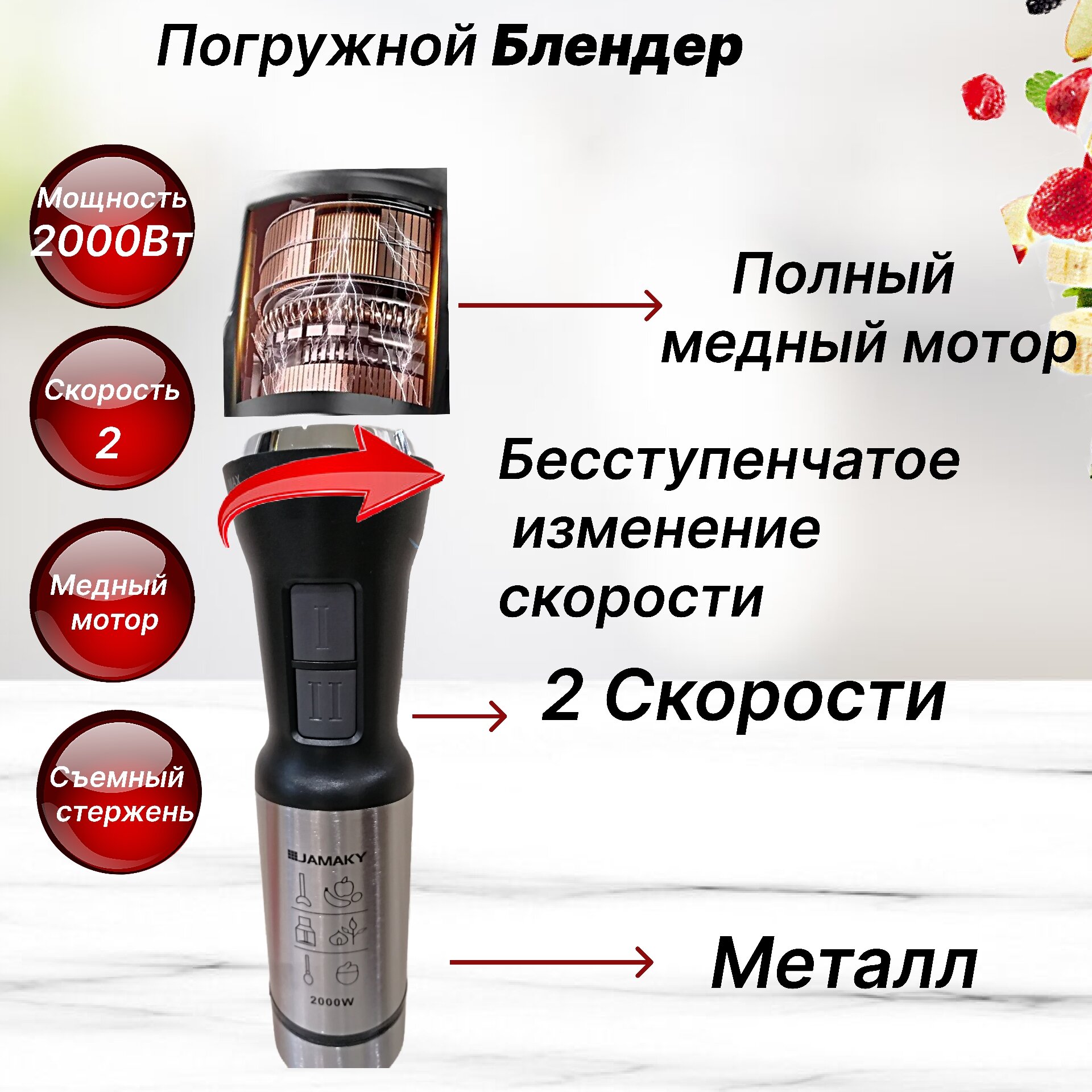 Купить Погружной блендер мощный 2000Вт черный-хром / Кухонный измельчитель пищи для дома/ Мощный Блендер домашний