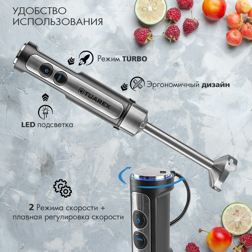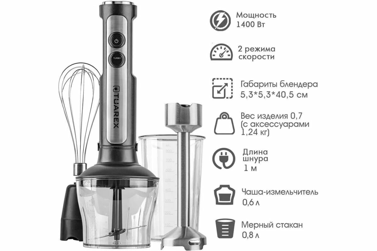 Блендер погружной с аксессуарами TUAREX TK-4102, 1400 Вт, нержавеющая сталь