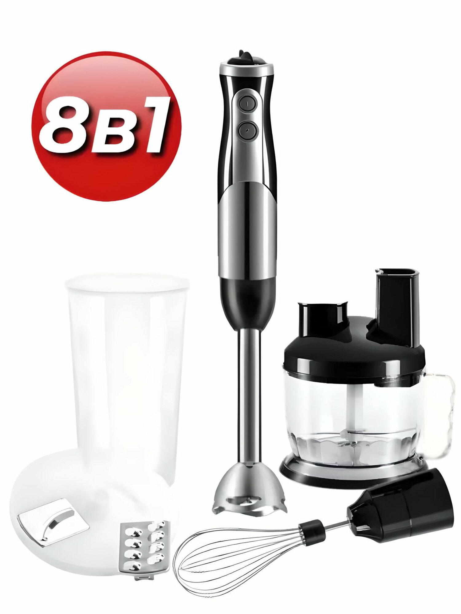 Купить Погружной блендер 8в1, 700Вт, 2 скорости, блендер для смузи, блендер кухонный /насадка: измельчитель, венчик, погружная, терка, для шинковки/ 5011-8