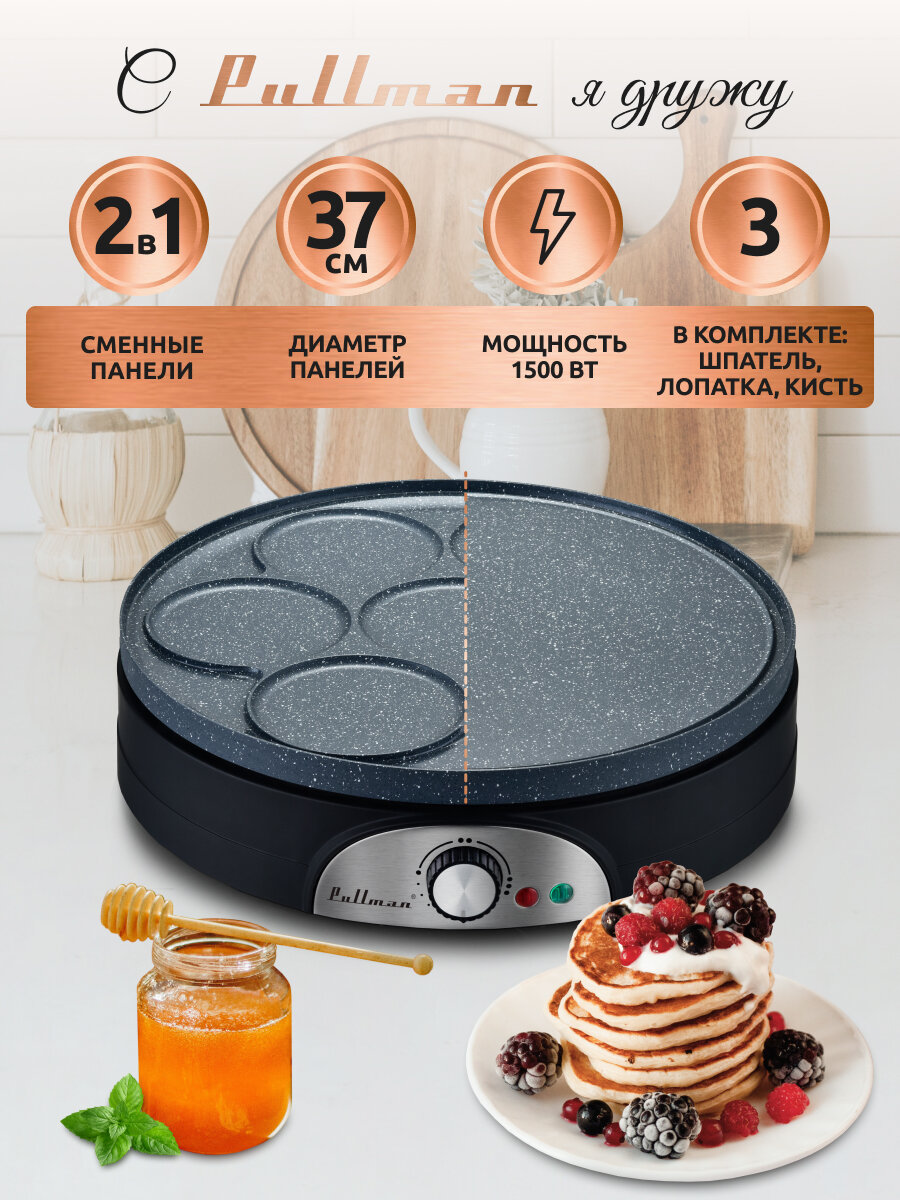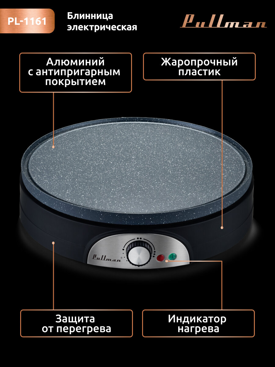 Купить Блинница Pullman PL-1161, Самый удобный размер блинов 37 см на 1 блин, 11 см на 7 оладий, керам. антипригарное покрытие