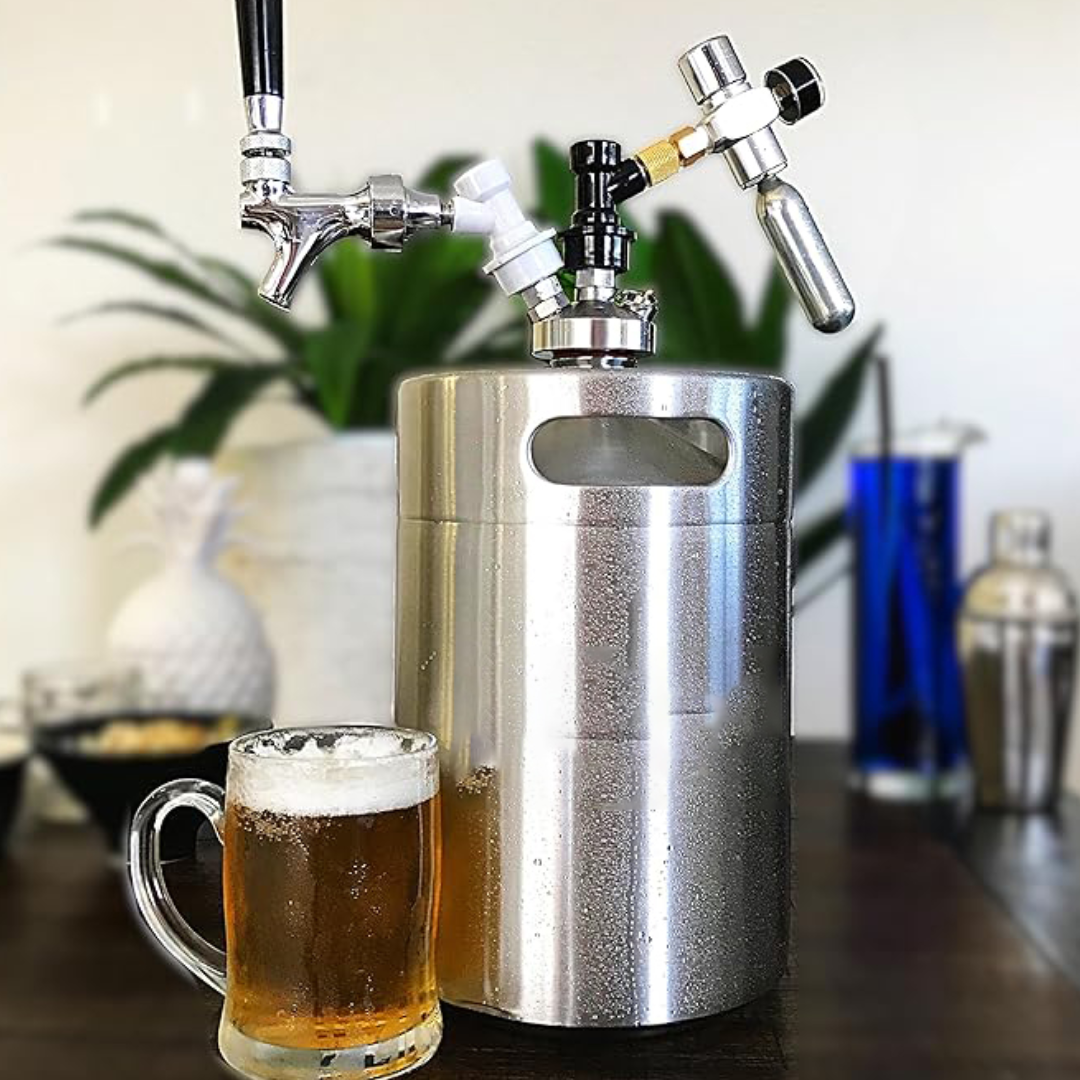 2-литровый мини-кег с краном для домашнего пива из нержавеющей стали с двумя манометрами класса