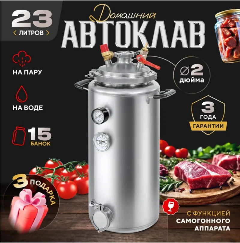 Ниже Вы можете прочитать отзывы на "Домашний автоклав Вейн" на 23 л, ознакомится с подробными характеристиками, посмотреть интересные обзоры и фотографии на "Домашний автоклав Вейн" на 23 л.