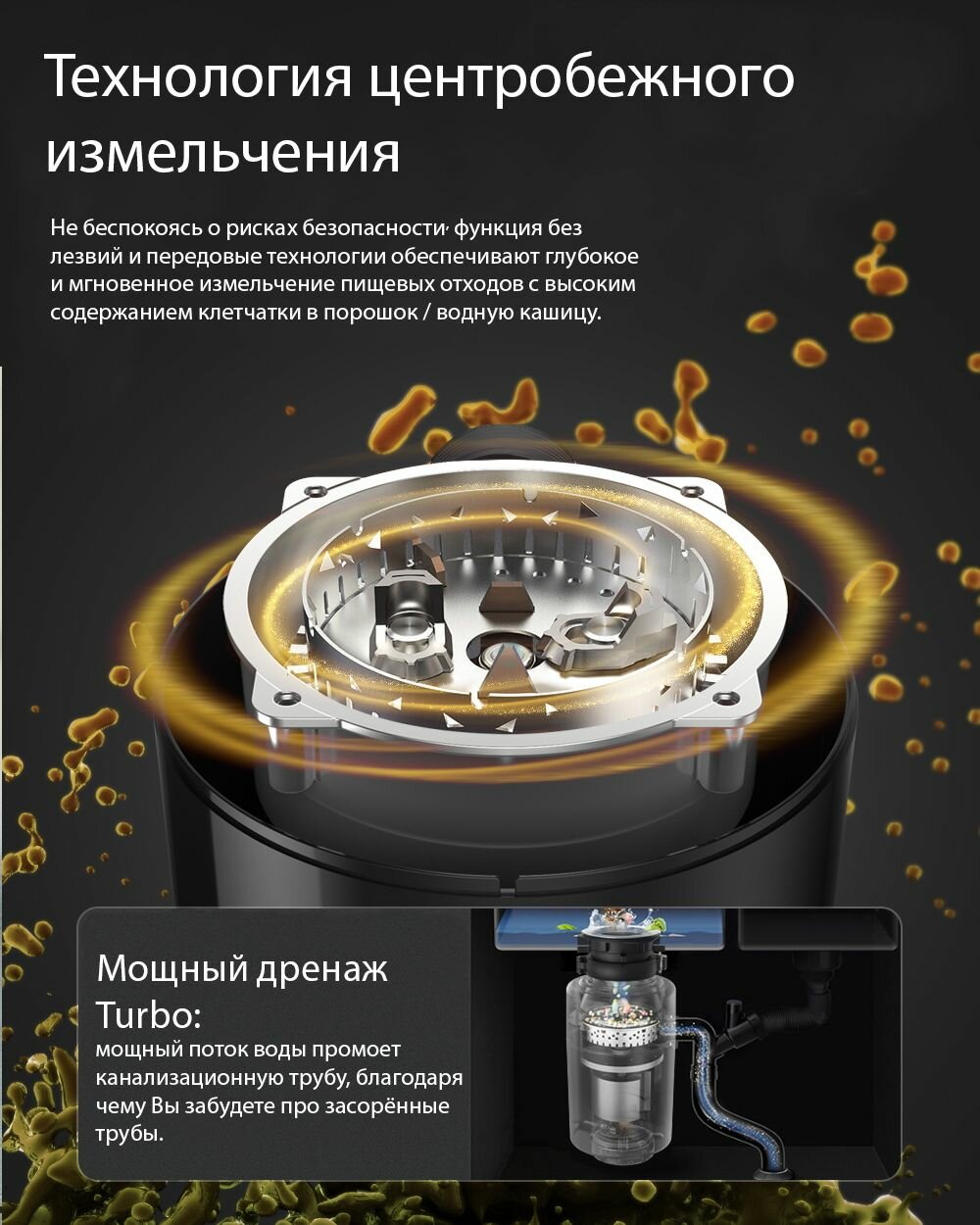 Кухонный измельчитель пищевых отходов Xiaomi Mensarjor Smart Anti-card Automatic Water Inlet Food Waste Disposer Black (LD900-F07)