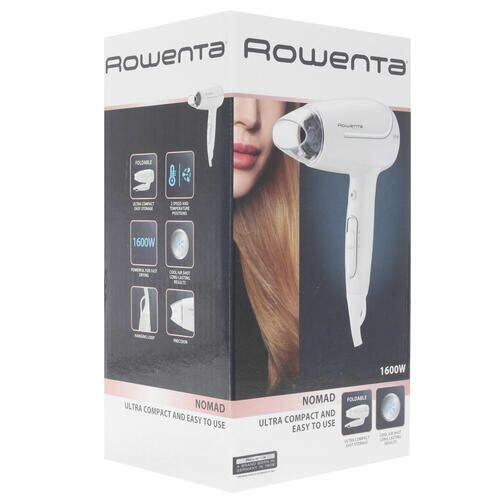 Фен Rowenta CV3320 белый, компактный, 1600 Вт, подача холодного воздуха, шнур - 1.8 м