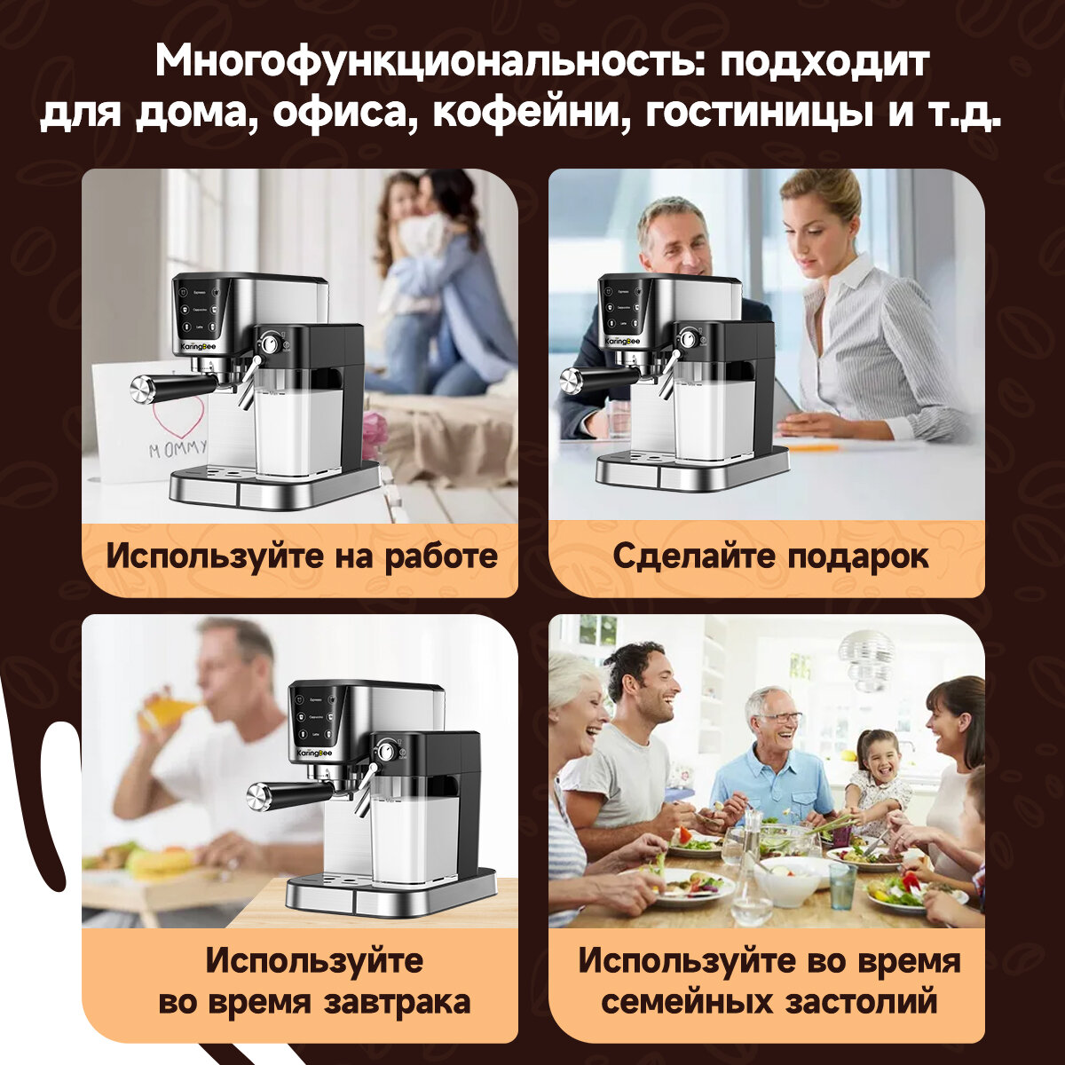 СохранитьПолуавтоматическая кофемашина KaringBee CM5280 с черно-белым сенсорным дисплеем, серебристого цвета интересное: