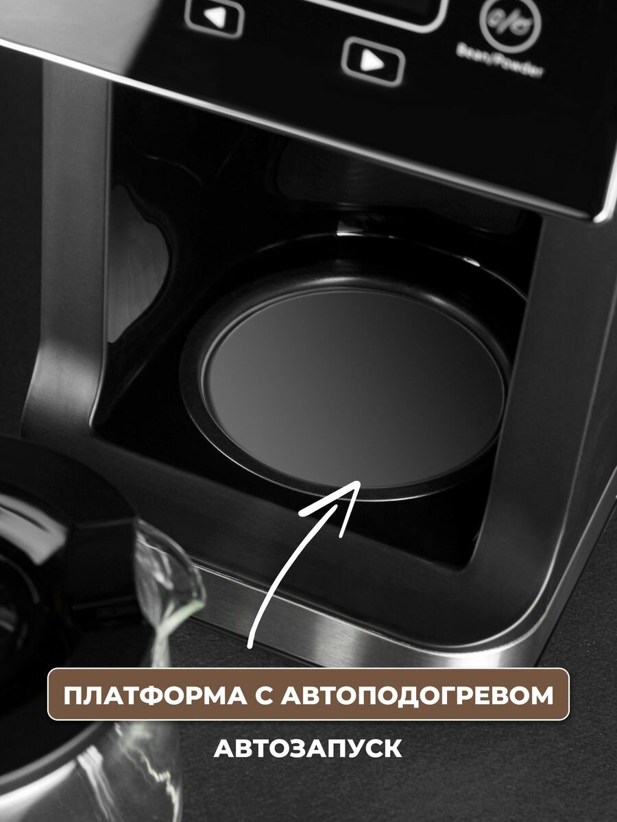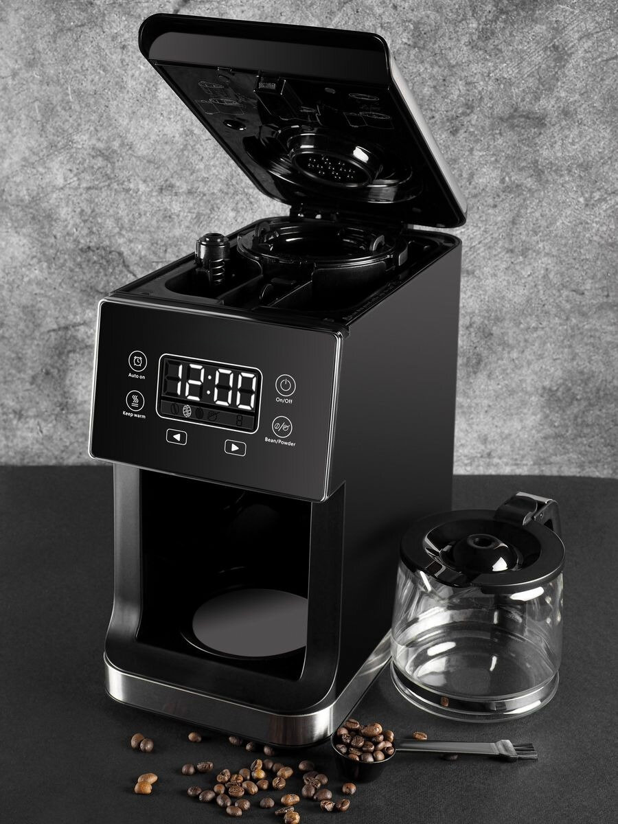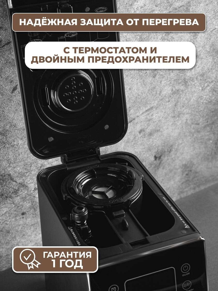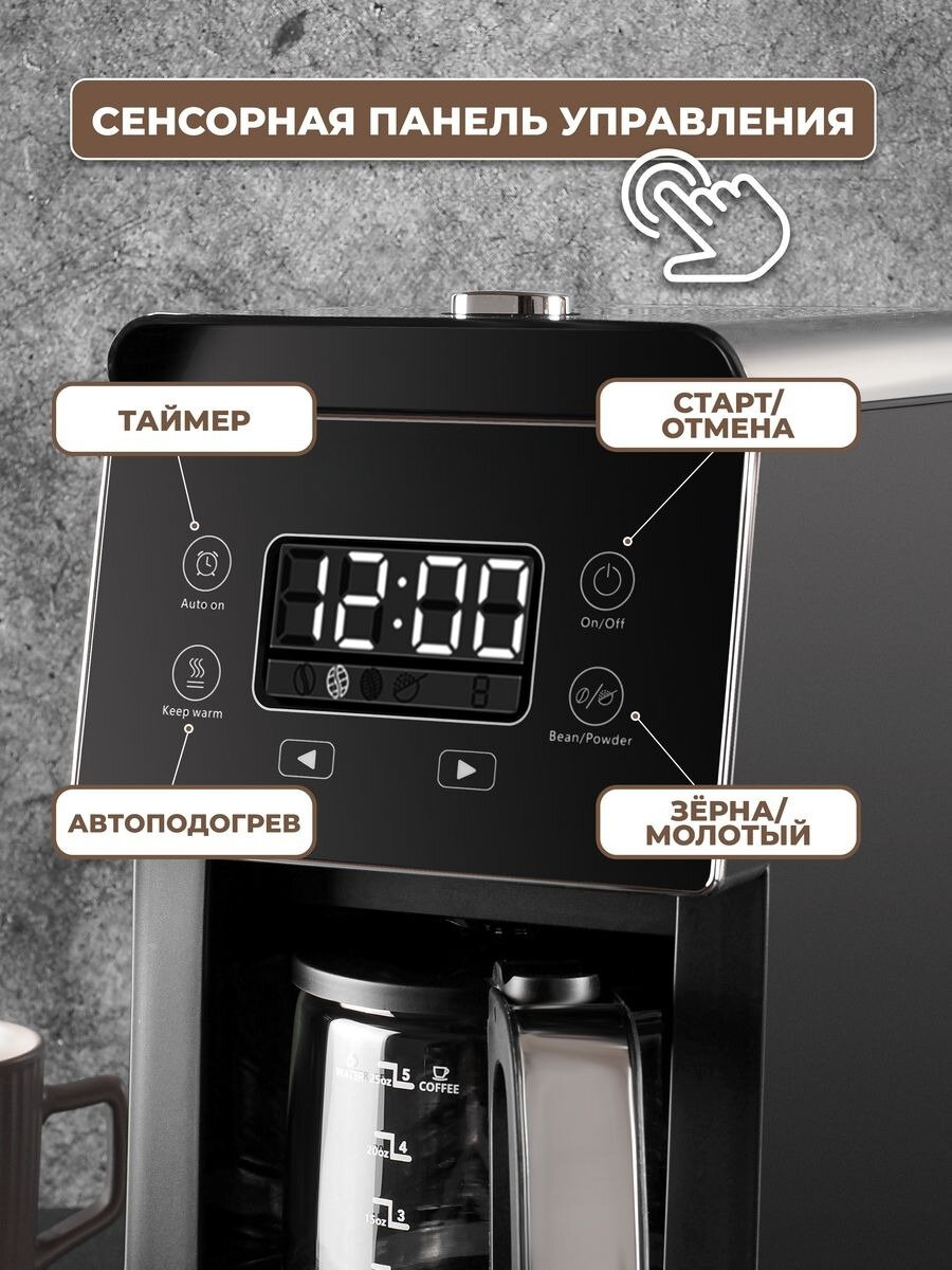 Кофемашина для дома зерновая, кофемашина с помолом, 900Вт, 0.8 литра, дисплей, встроенная кофемолка, для американо, автоподогрев, черный интересное: