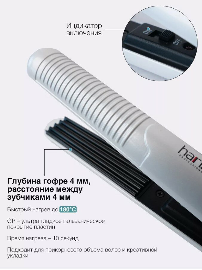 Щипцы-гофре для волос Harizma h10312GP Crimp Designer Gp для креативного дизайна 32 Ватт 2,5 м. 180 C