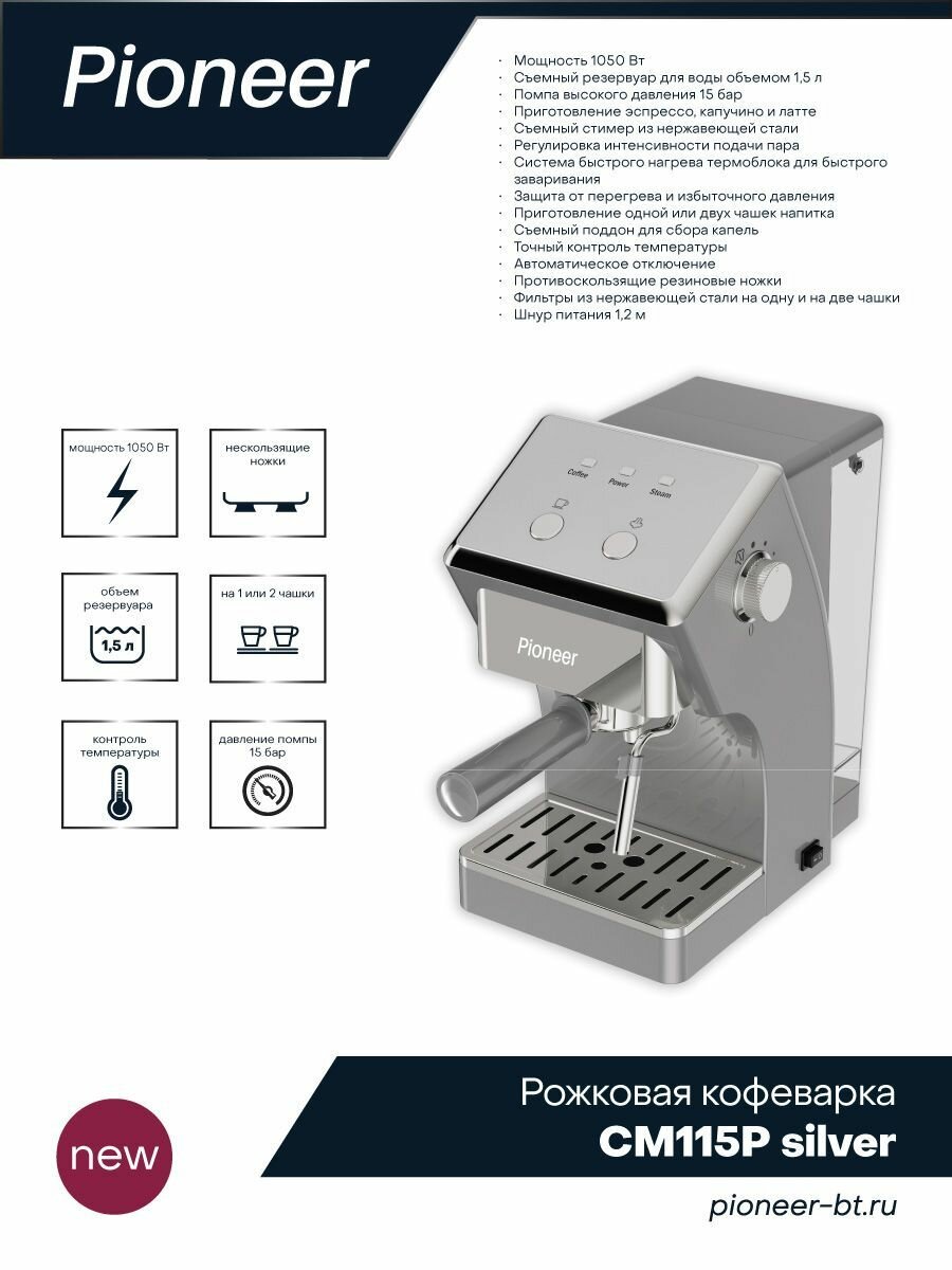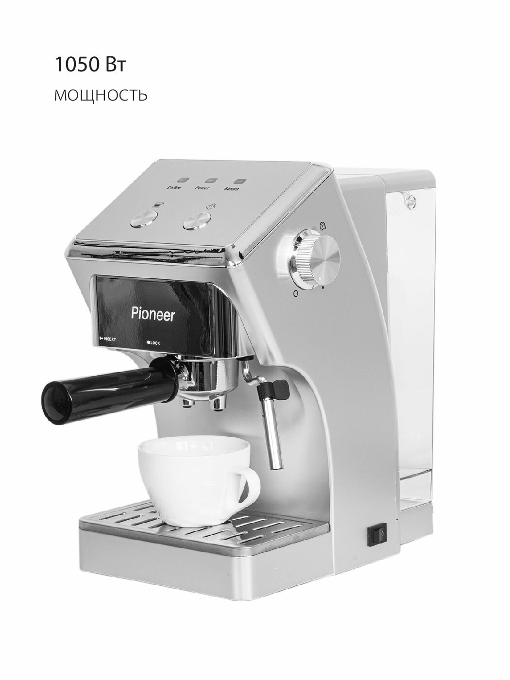 Рожковая кофеварка для дома профессиональная Pioneer CM115P silver с капучинатором, электронное управление, эспрессо/капучино/латте, мгновенный нагрев интересное: