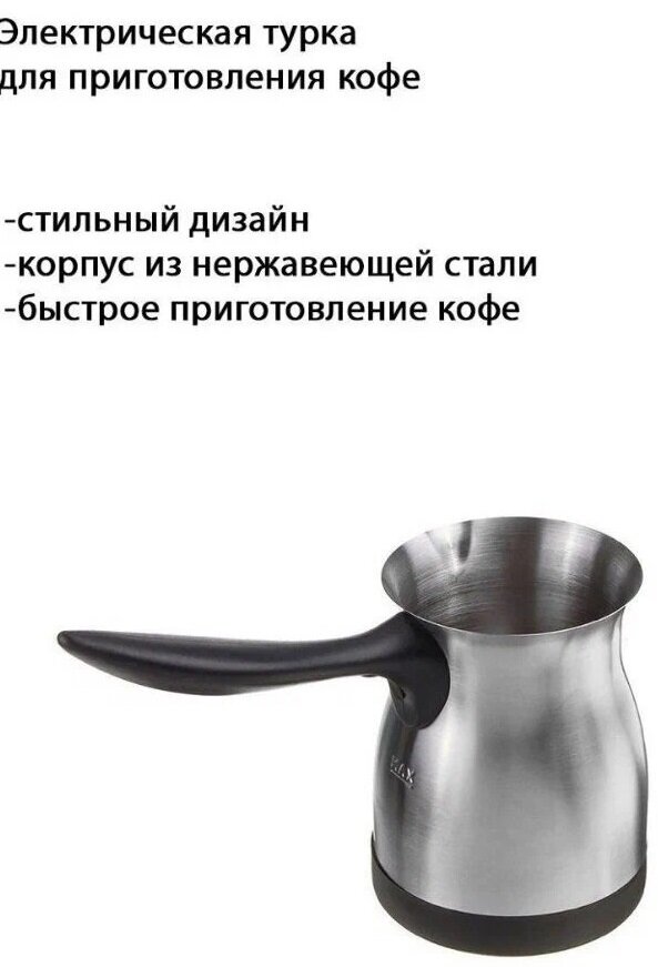Высококачественная электрическая турка /500 мл/800 Вт/нержавеющая сталь/простая в использовании/серебристый интересное: