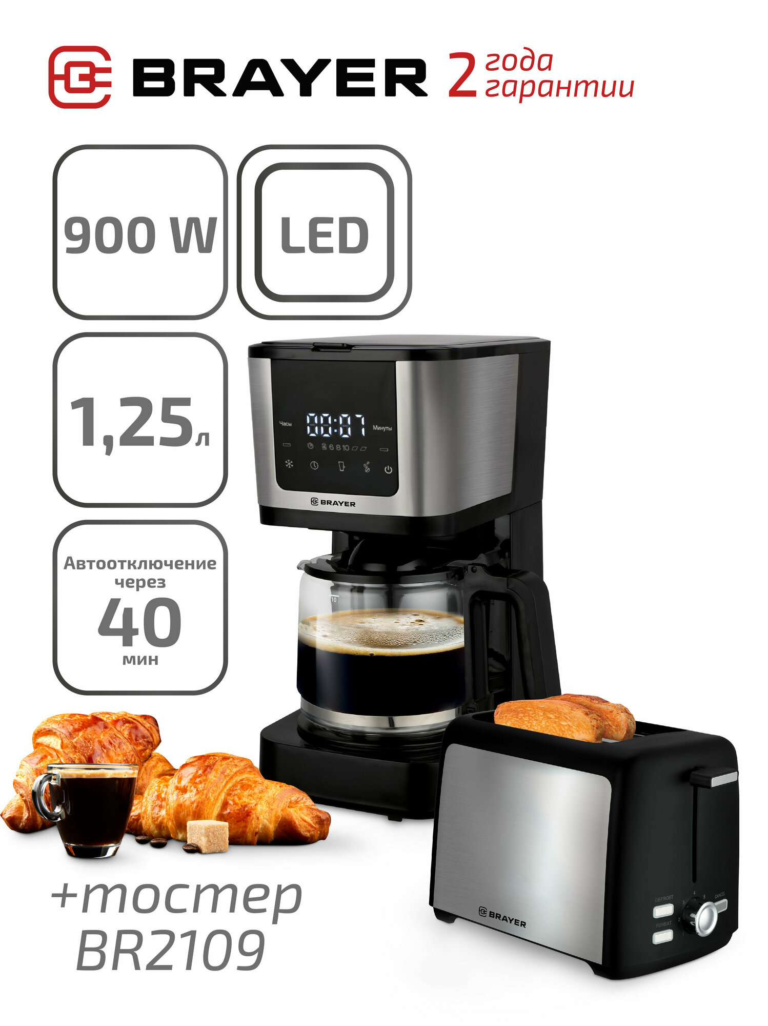 Набор Кофеварка капельная + Тостер BRAYER интересное: