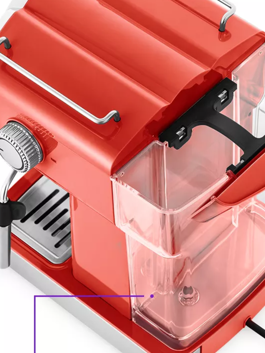 | Дополнительная информация | Комплектация 1. Кофеварка — 1 шт. • Резервуар для воды — 1 шт. • Поддон для капель со съемной решеткой — 1 шт. 2. Рожок — 1 шт. 3. Ручка стимера — 1 шт. 4. Насадка панарелло — 1 шт. 5. Одинарный фильтр (single) — 1 шт. 6. Двойной фильтр (double) — 1 шт. 7. Мерная ложка-темпер — 1 шт. 8. Руководство по эксплуатации — 1 шт. 9. Коллекционный магнит — 1 шт.* *опционально |