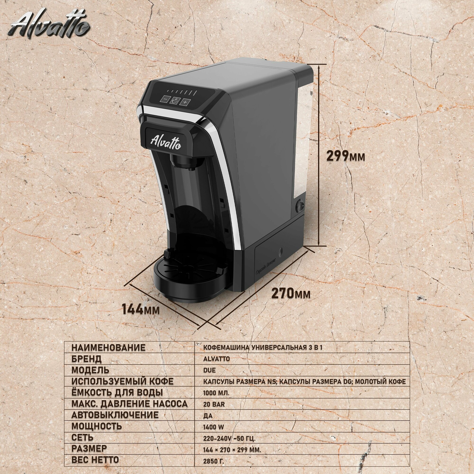 Универсальная кофемашина Alvatto Due 3-в-1 с адаптерами для капсул Nespresso, Dolce Gusto и молотого кофе / Coffee Graphite интересное: