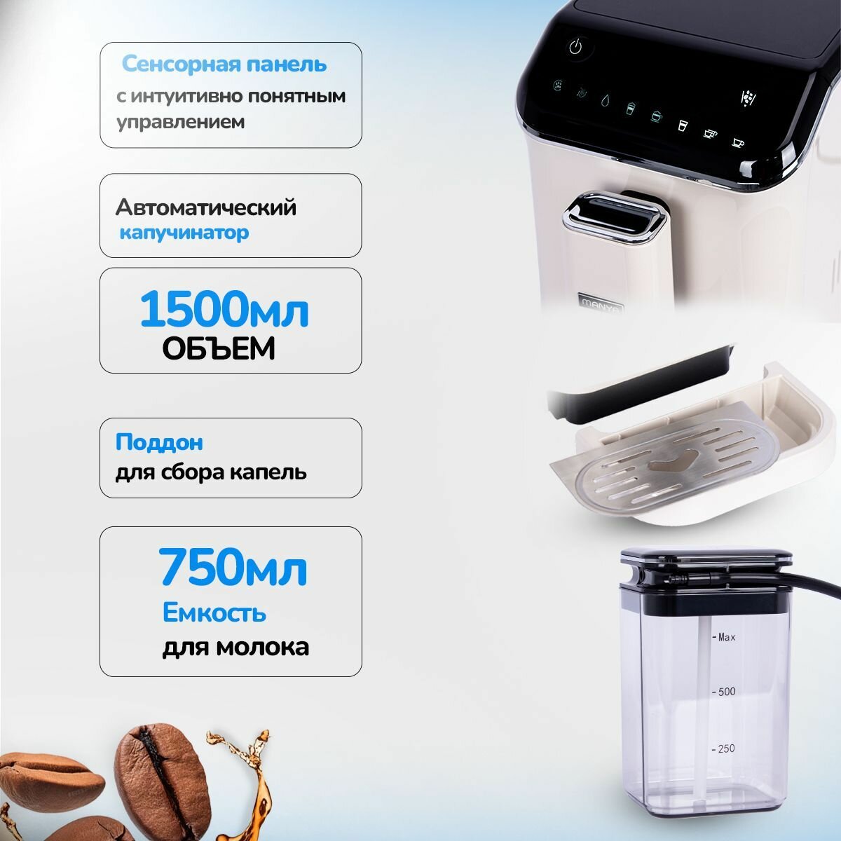 Кофемашина автоматическая зерновая с капучинатором MANYA EAC20.01WH для дома и офиса