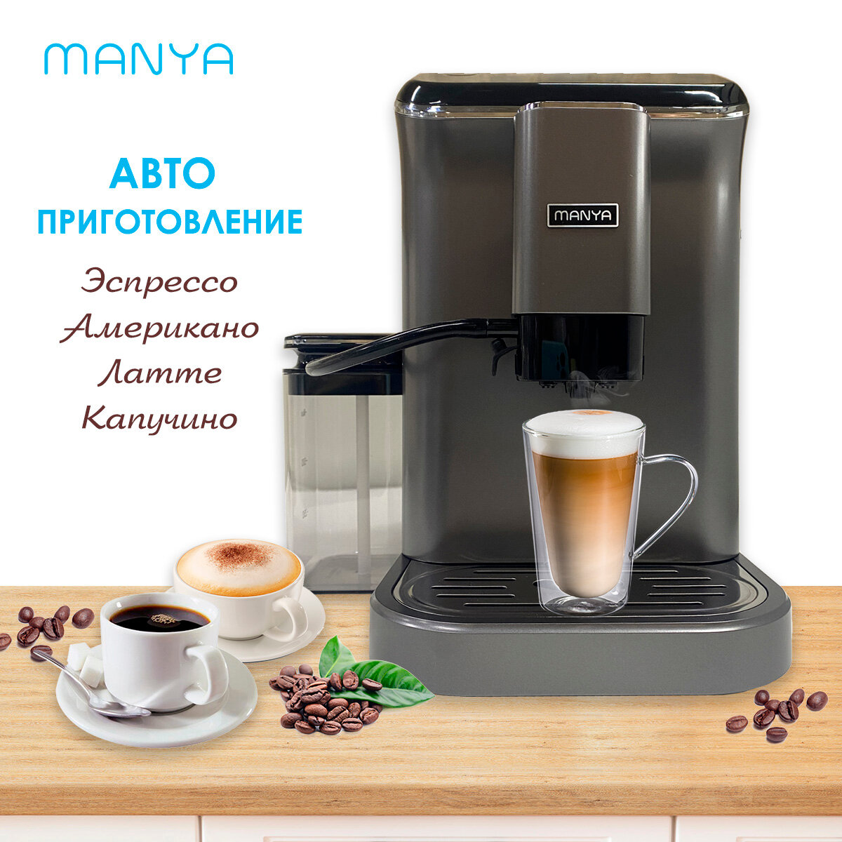 Кофемашина автоматическая зерновая MANYA EAC20.01I, с капучинатором, для дома и офиса
