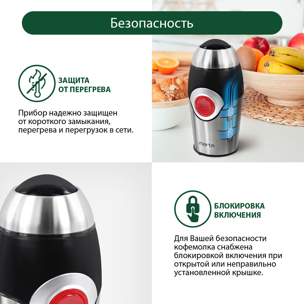 Кофемолка MARTA MT-2169 ночной коралл интересное: