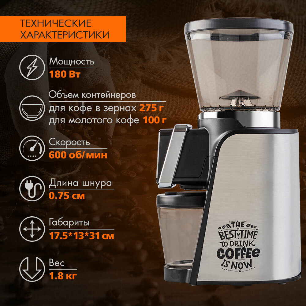 Профессиональная электрическая кофемолка из нержавеющей стали для приготовления ароматного кофе GOOD MORNING/SM-3001S