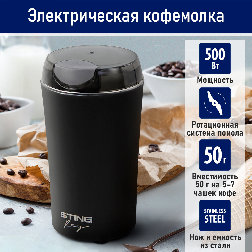 Кофемолка STINGRAY ST-CG2403A черный/серебро интересное:
