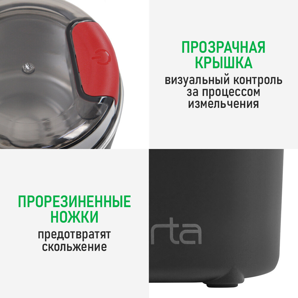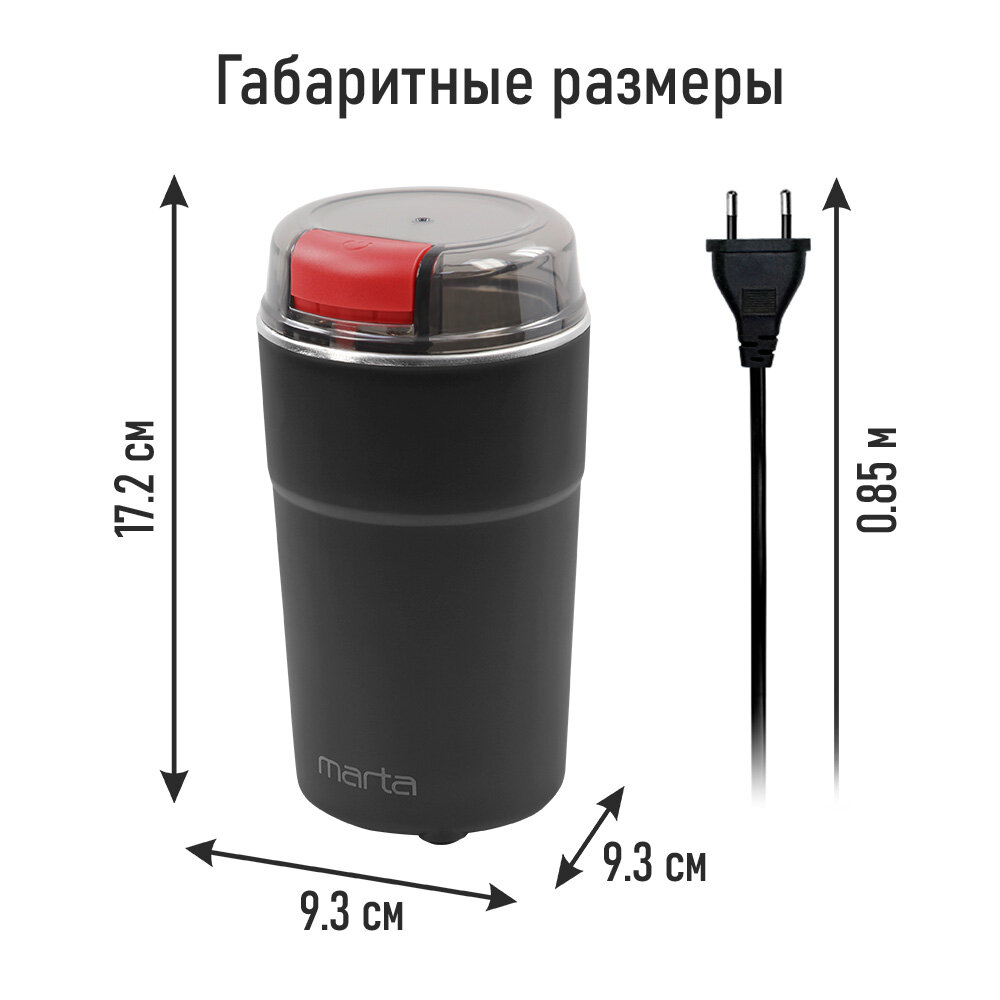 Кофемолка MARTA MT-CG2188A черный/красный интересное: