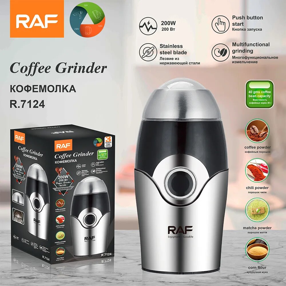 | Дополнительная информация | Встречайте! Кофемолка "R7124". От уверенного, но известного в малых кругах бренда, специализирующего на бытовой технике, изготовителя "RAF". |