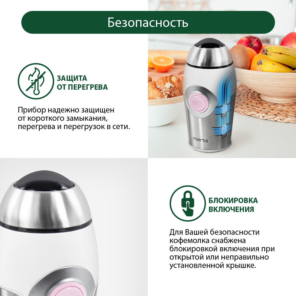 Кофемолка MARTA MT-2169 розовый опал интересное: