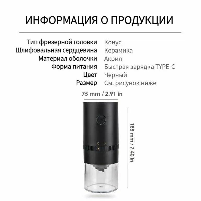Кофемолка электрическая USB Type C электрокофемолка черная на 25 грамм интересное: