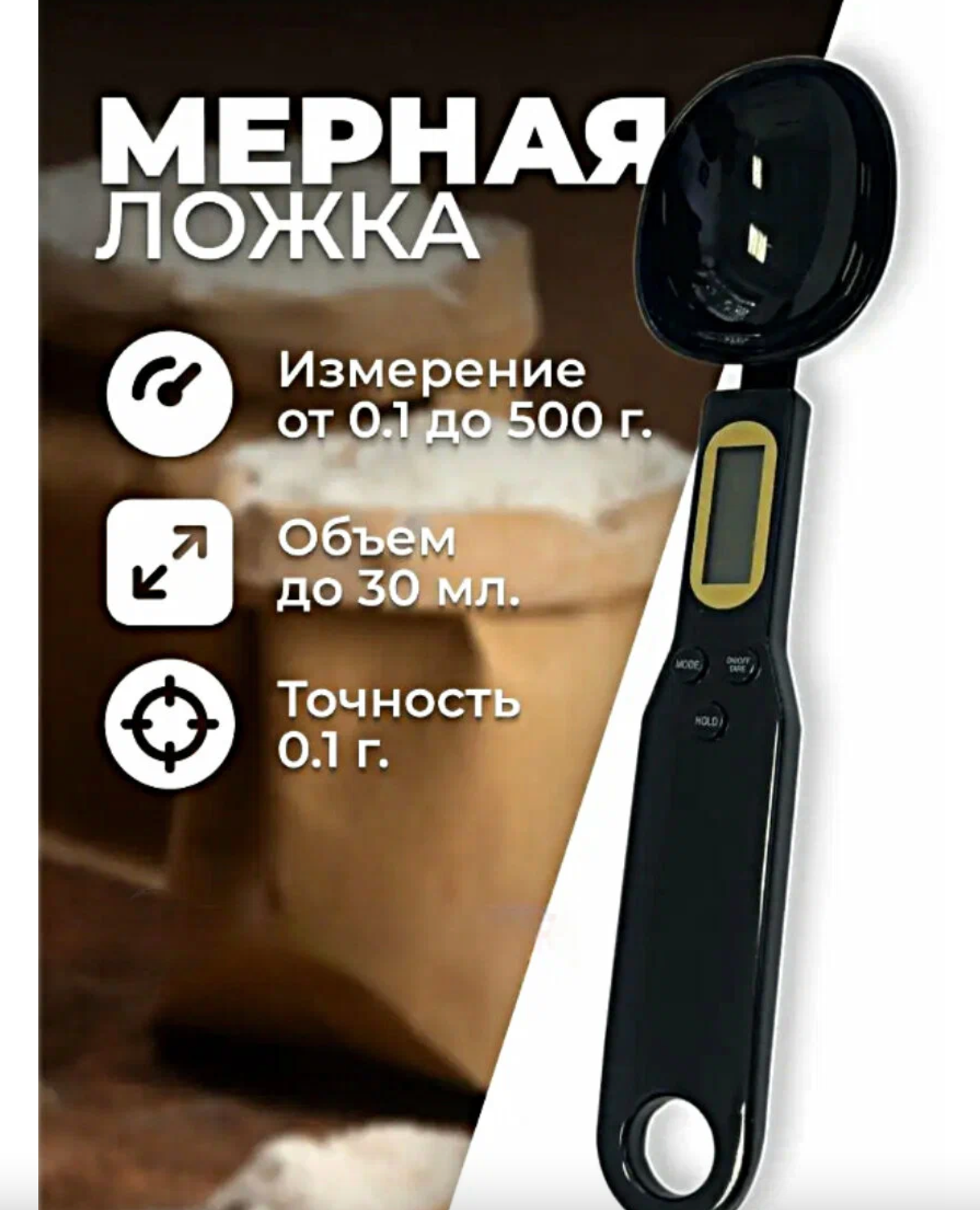 | Дополнительная информация | Инструкция по применению: - Для включения нажмите на кнопку «TARE». Одновременно с этим загорится подсветка экрана, а на дисплее появится цифра «0», после чего можно производить взвешивание. - Для выключения нажмите и удерживаете 2 сек. кнопку «TARE». - Если взвешивание было завершено и вес на ложке не меняется в течение 60 секунд, то ложка отключается автоматически. |