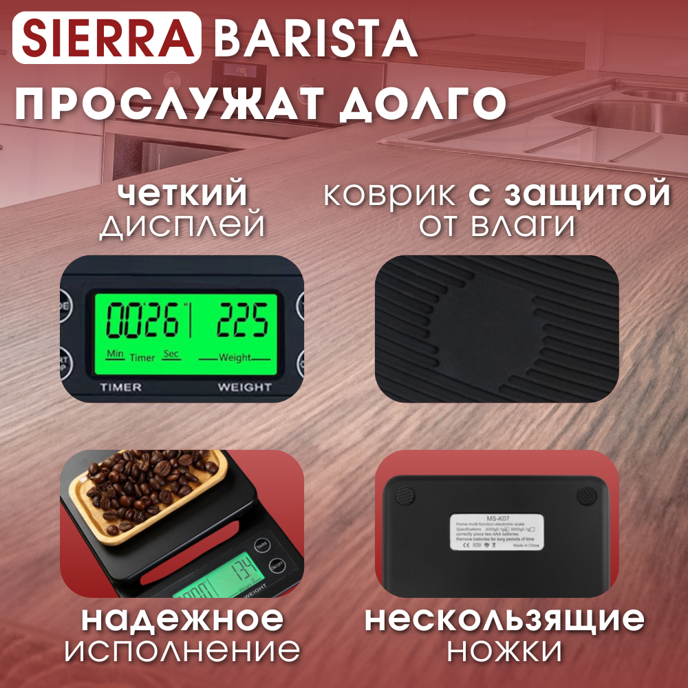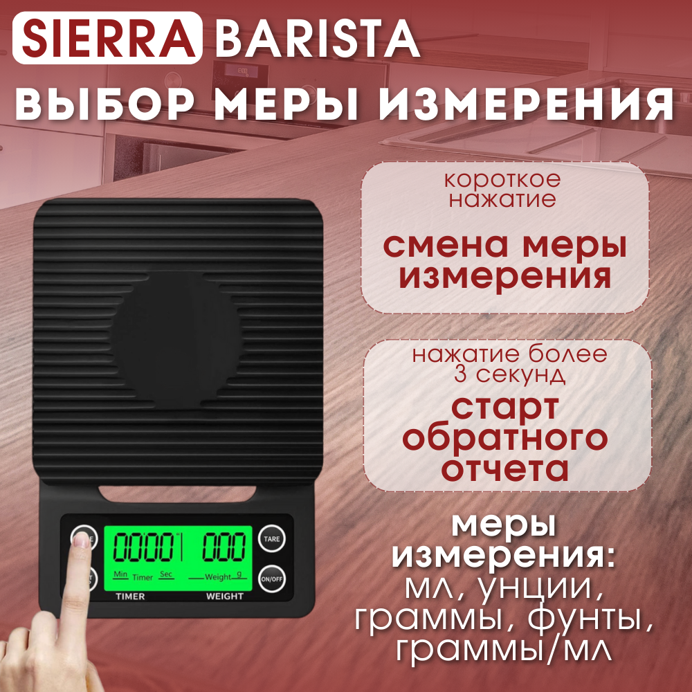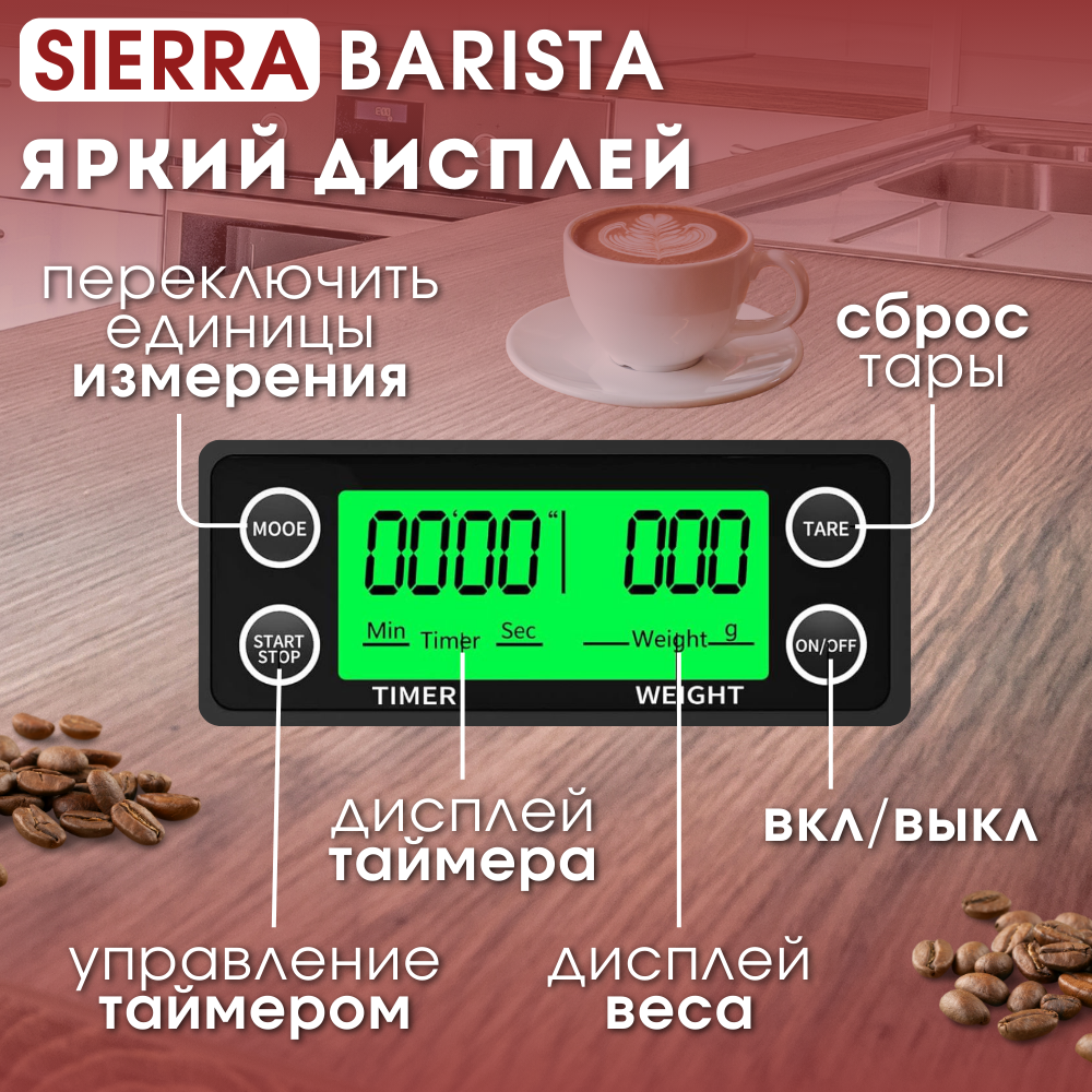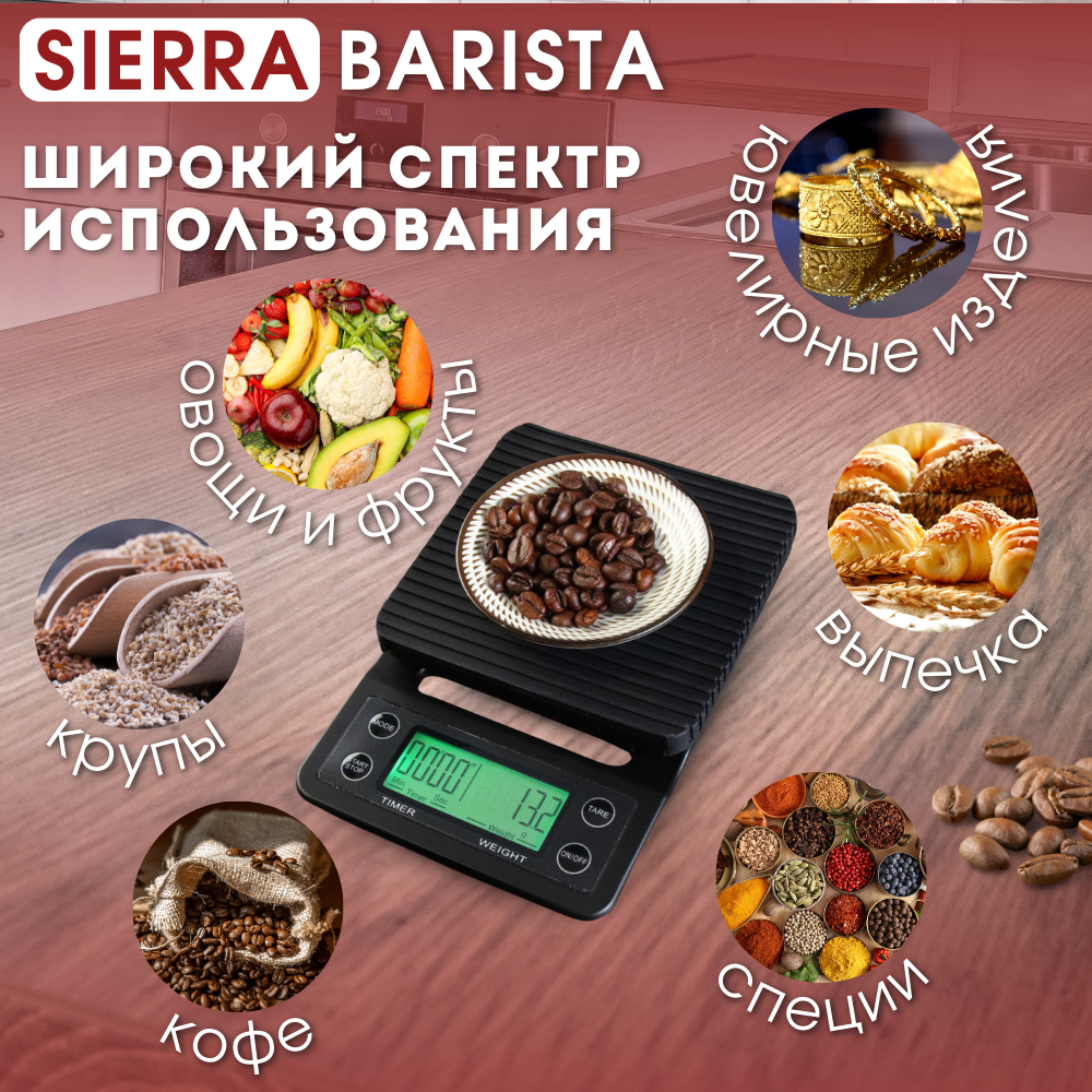 Весы для кофе с таймером, кухонные весы SIERRA BARISTA интересное: