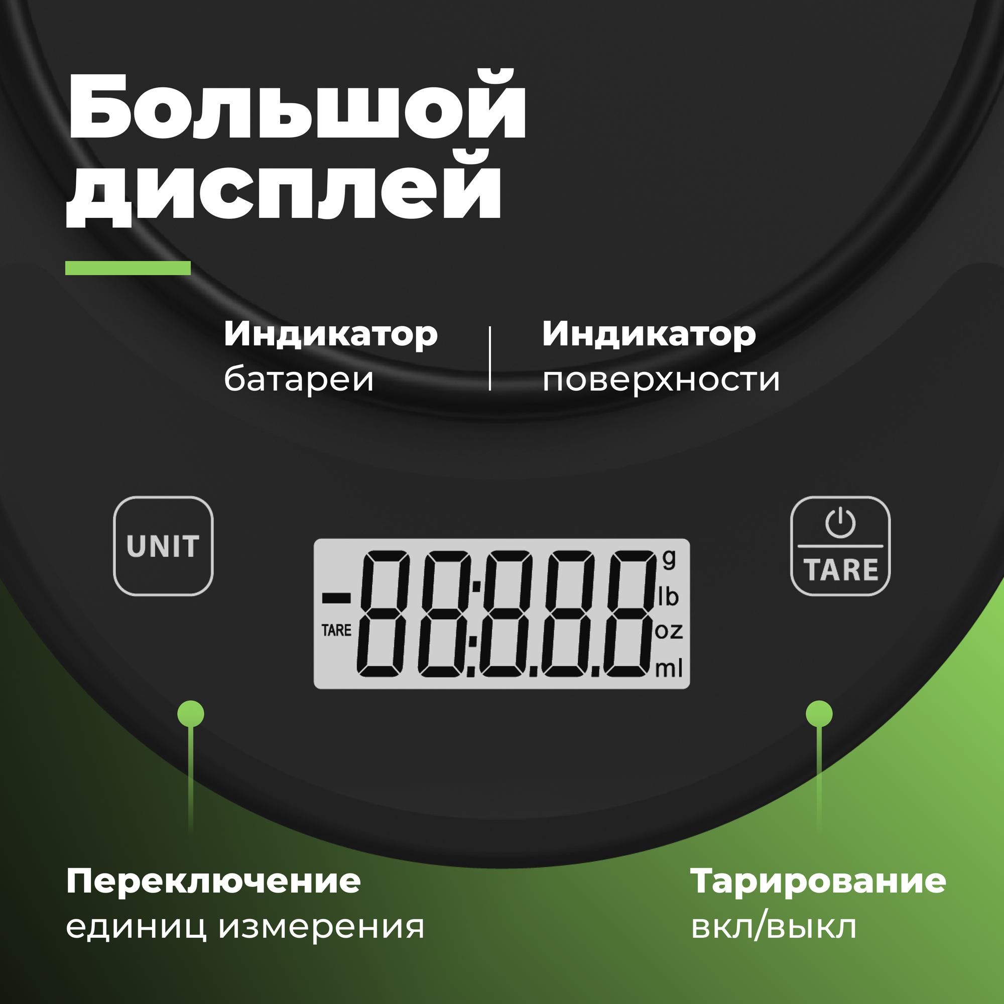 | Дополнительная информация | Большой дисплей; Выбор единиц измерения; Подсветка дисплея; Антискользящая поверхность; Компактные; Экономичные; |