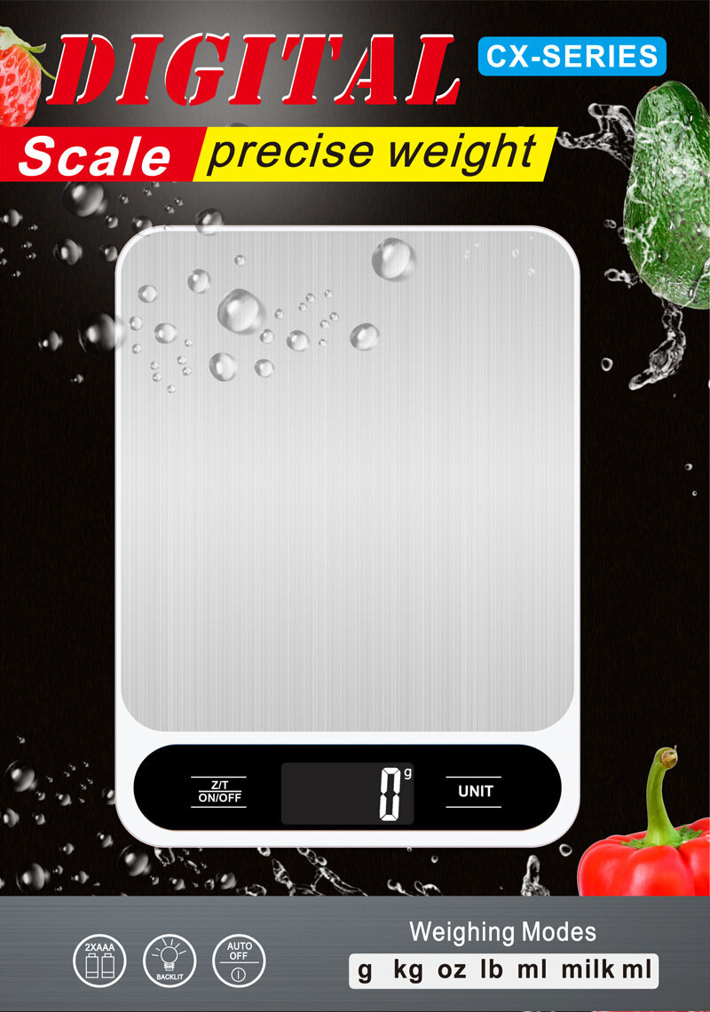 Весы кухонные, перезаряжаемые Digital CX-Series, до 15кг черно-серебристые интересное: