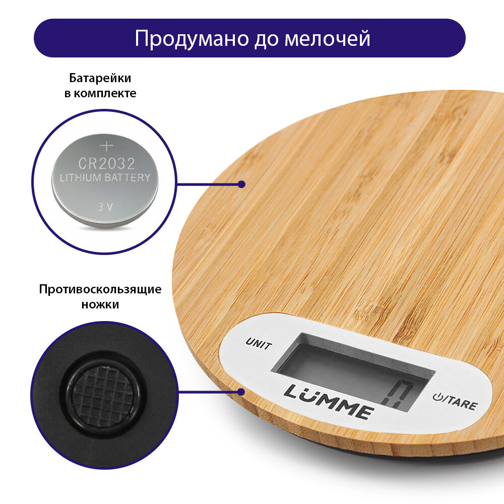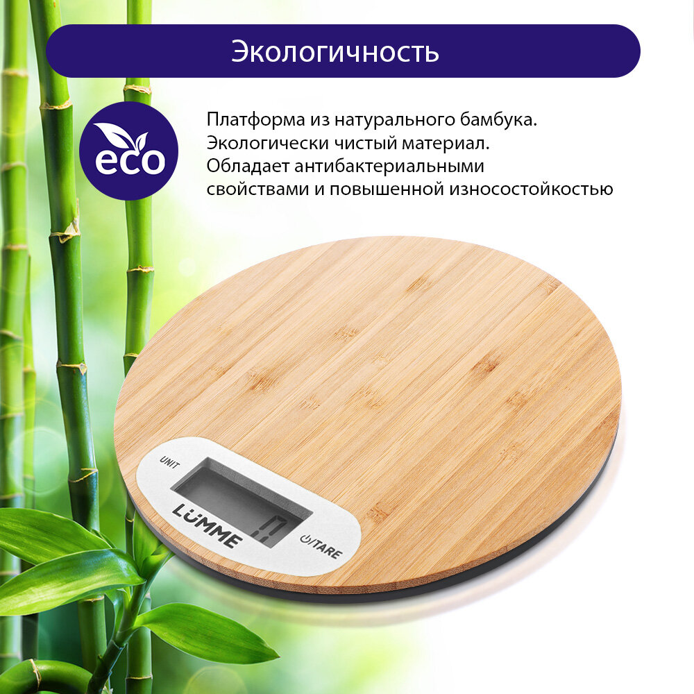 Кухонные весы LUMME LU-1347 белый бамбук интересное: