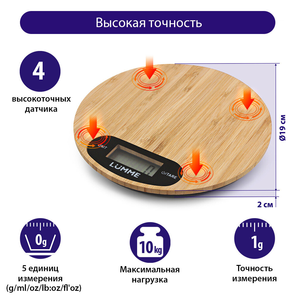Купить LUMME LU-1347 (new) черный бамбук весы кухонные сенсор