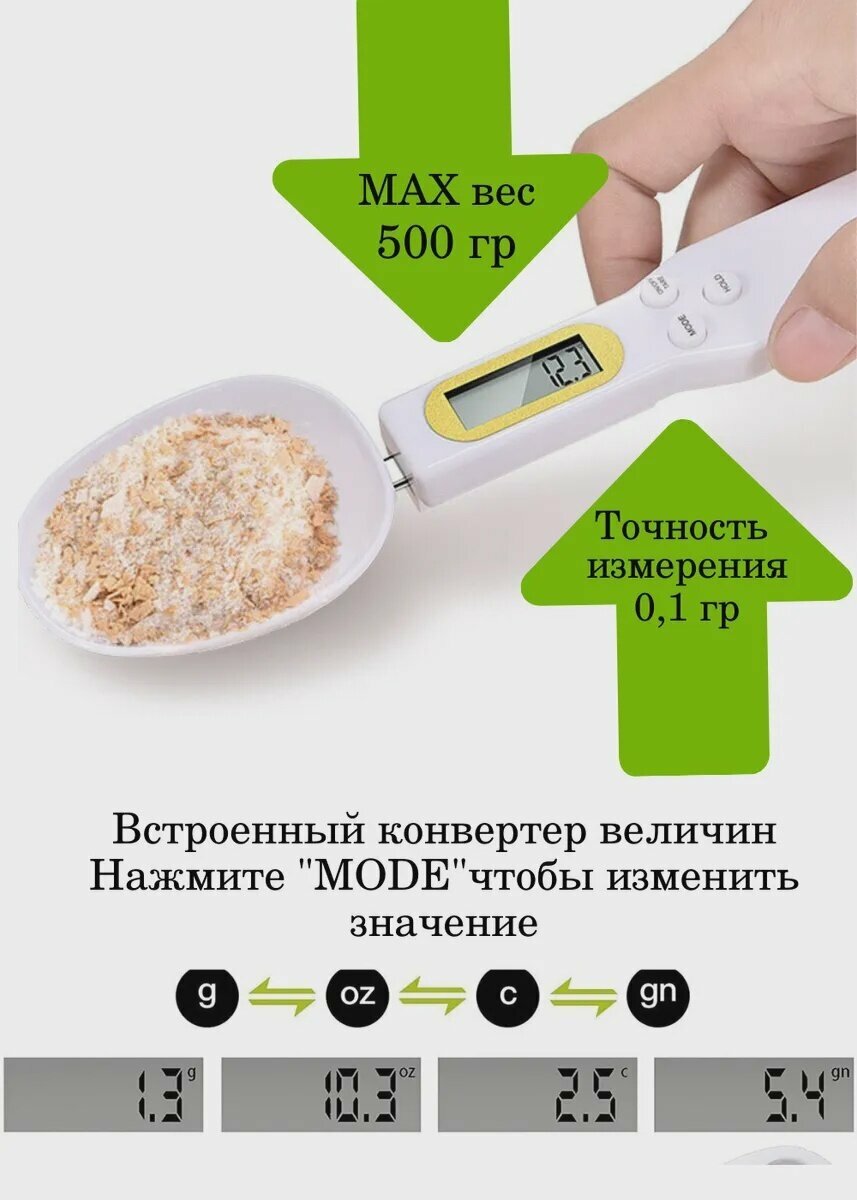 Электронная мерная ложка-весы / Кухонная цифровая ложка-весы с ЖК дисплеем / Digital Spoon Scale AA2, белый. интересное: