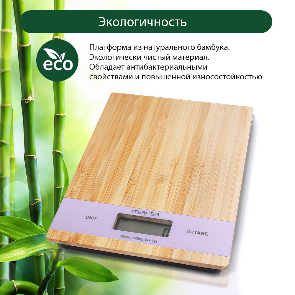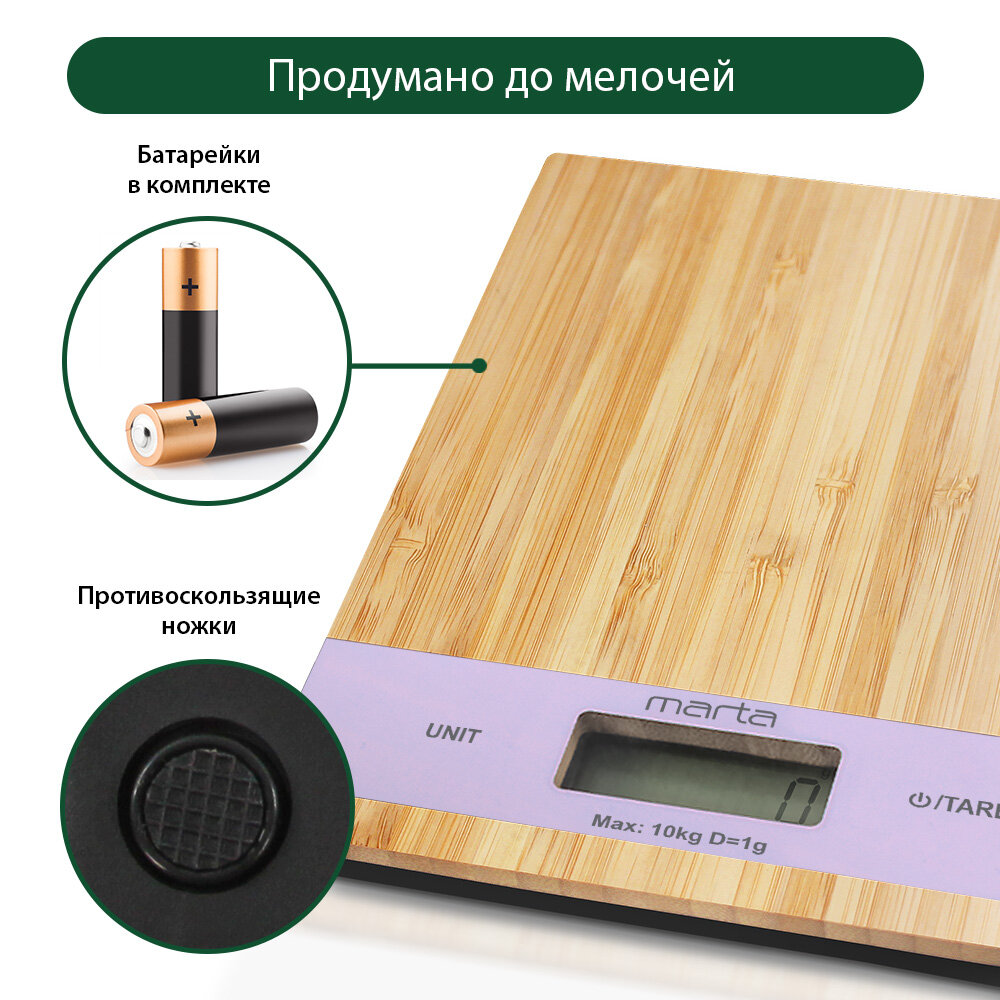 MARTA MT-1639 {new} лиловый бамбук весы кухонные сенсор, встроенный термометр интересное: