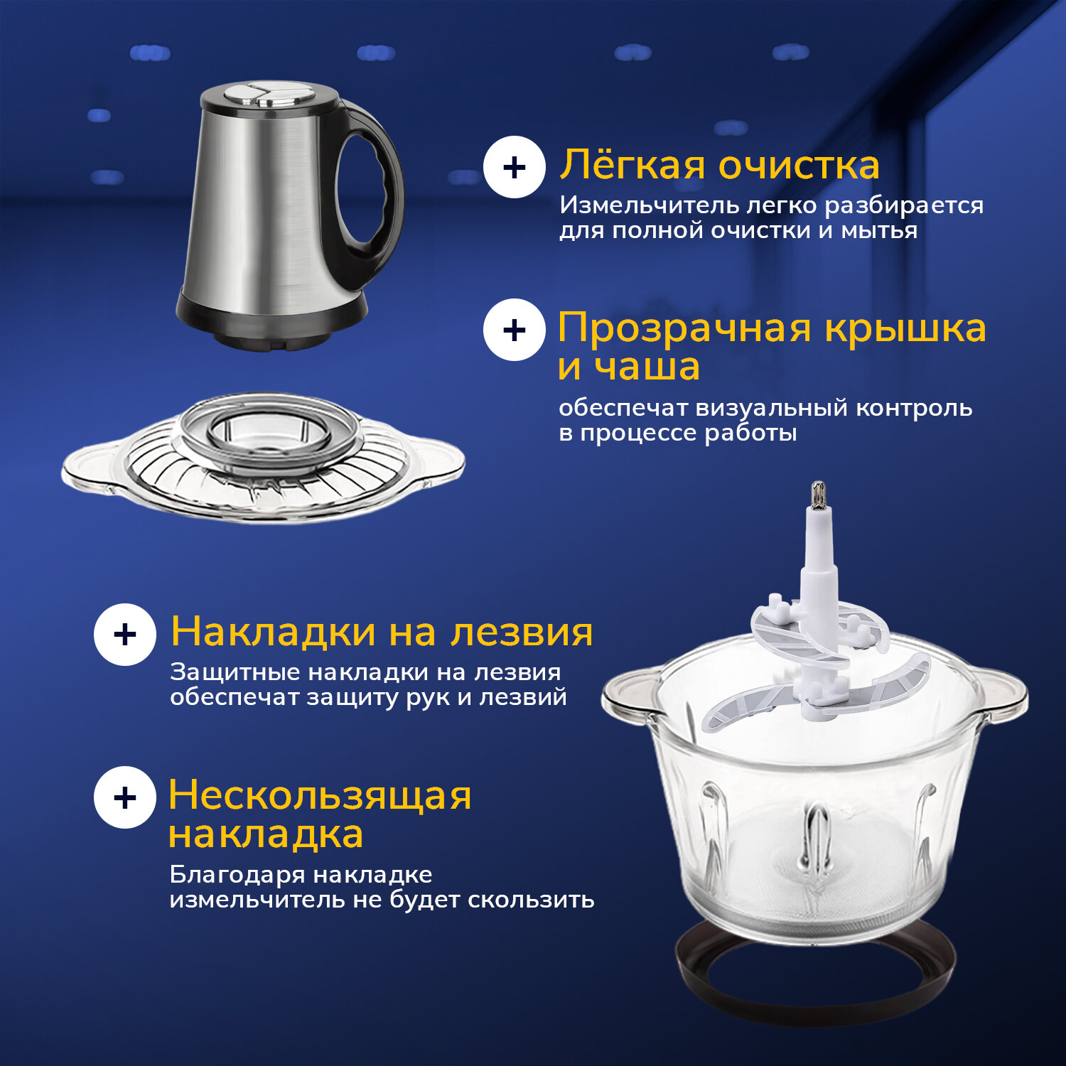 Измельчитель 2 л электрический кухонный универсальный с чашей чоппер стеклянный интересное:
