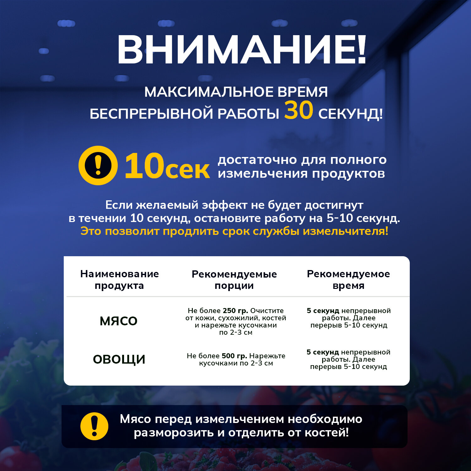 | Насадки | мясорубка, универсальный нож |