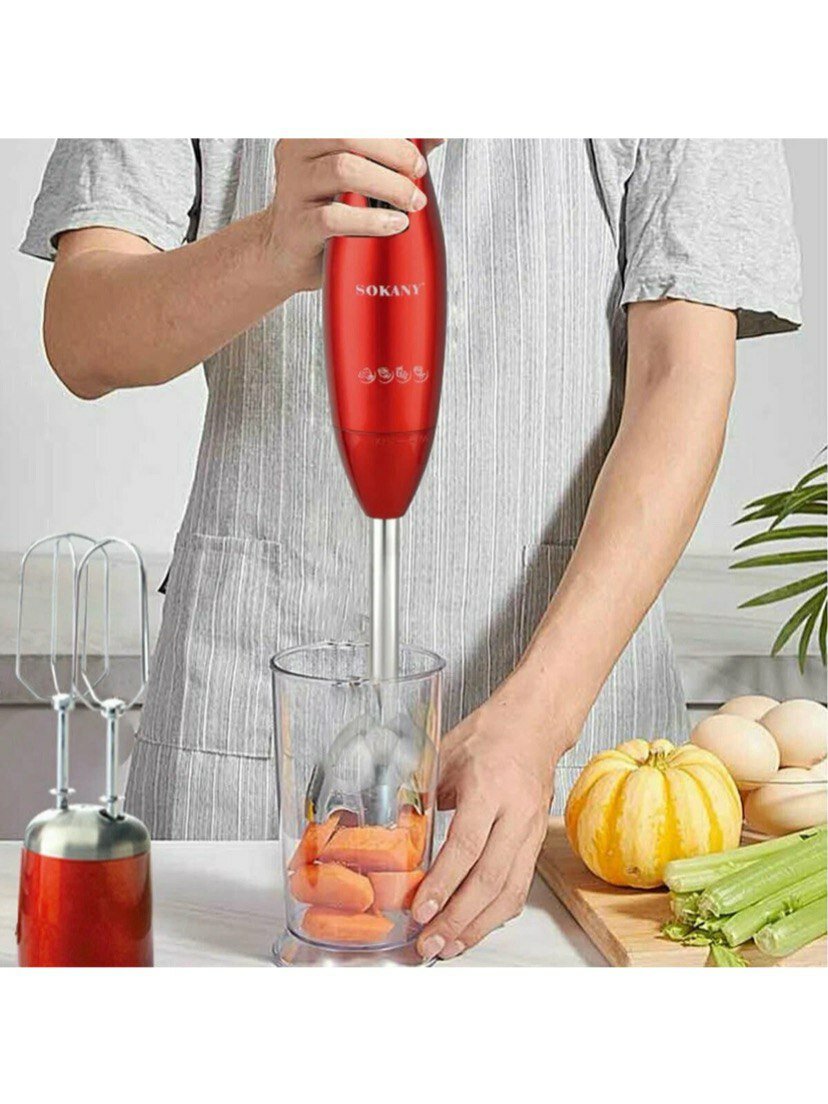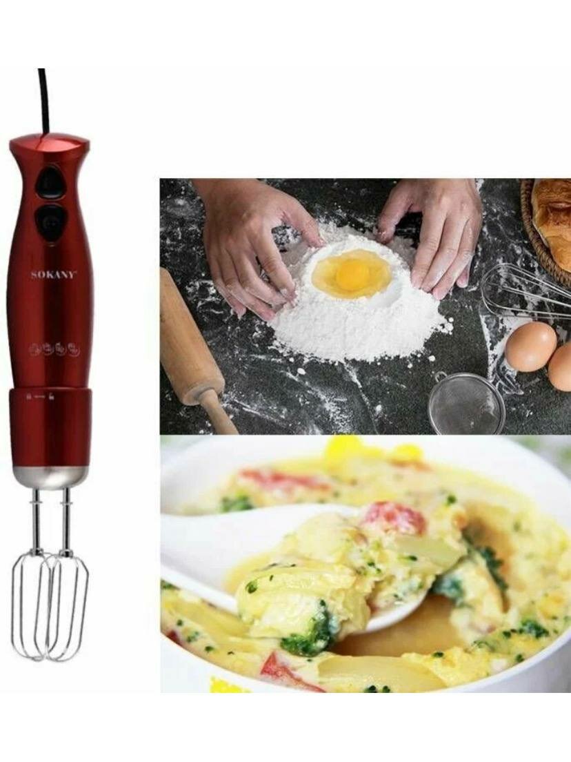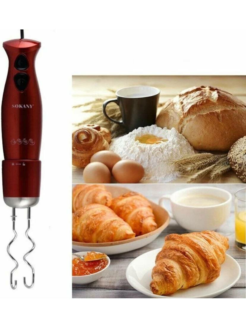 | Подробная комплектация | ручной блендер; 2 колотушки; 2 крючки для замеса; миска; лезвие для измельчение; лезвие для нарезки; держатель лезвия; адаптер |